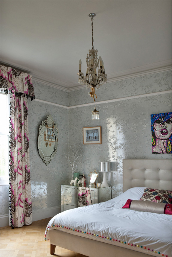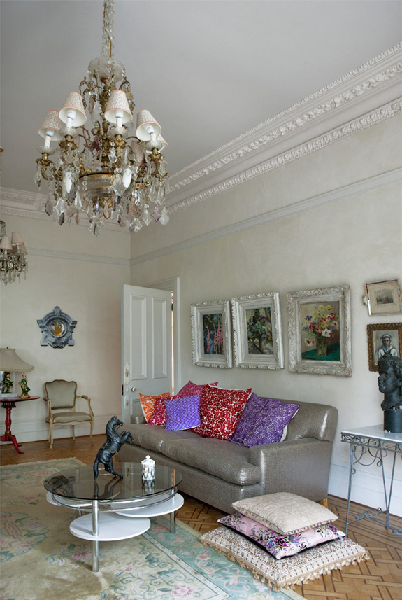 Que espacio lleno de estilo y glamour. Gran uso del color en los textiles que decoran la casa.