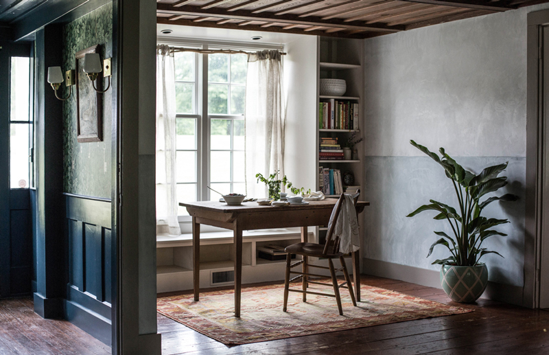 If you asked me what type of home I would want to live in for the rest of my life if I had to choose one, this is my answer. This home and everything in it. A late-18th-century farmhouse tucked away in 167 acres of fields and forest, complete with a barn, pool, pond, and tennis court. Over its many years the house has seen plenty of renovations and, we can only imagine, has lived just as many lives. Its most recent iteration featured a rainbow’s array of wall colors and strange furniture choices. It was immediately clear that all that needed to go, and that we’d basically need to start from scratch, while keeping just a few old details like the wide-plank floors and rich chestnut paneling. Such a relaxing, serene environment filled with all the wonderful textures and neutral tones you would expect in your dream farmhouse. By Jersey Ice Cream Co. (Previous feature here)