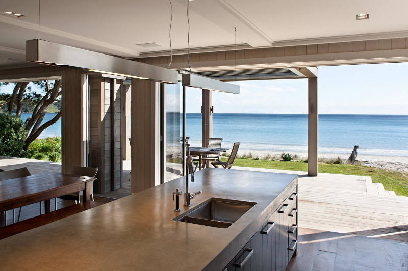 There’s something subliminal going on with my posts so far this week. Beach houses and holiday rental accommodation, accommodation and houses by the sea. Perhaps I need some time off? A holiday in a beach house? Or perhaps it’s just where the interwebs have taken me this week. Like this beautiful home at Onetangi Beach by New Zealand design firm Sumich Chaplin Architects. Open the doors and drink in that view.