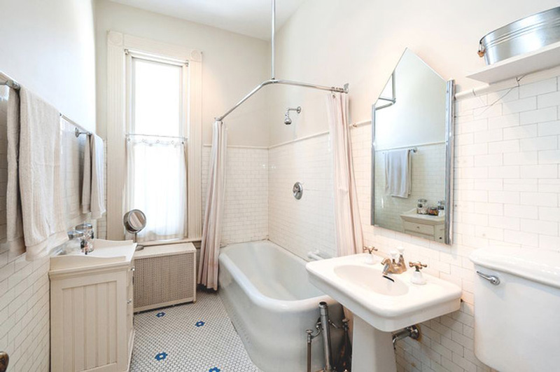 I love the old style bathroom! And that turret! And that porch!