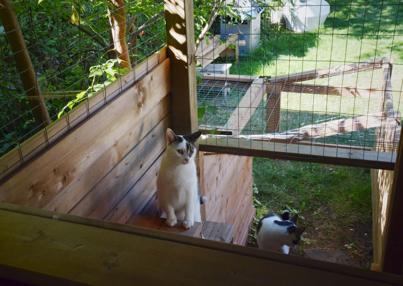 And a sneak peek from me. If you’re not following me or my cat herd on Instagram then you missed the inauguration of the new catio we built! They all freaking love it, and as I was getting this post ready I stuck my head out to look and found feral Georgie down in the grass exploring for the first time. YAY!! Here is the first time Frankie went out exploring with his brother Bernie. This is the view from the escape route through the kitchen window, and Frankie giving me a side-eye. (I’ll try to get decent photos of it this week)