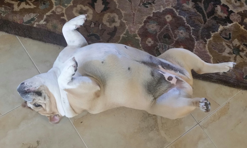 Honey Bea is a 68 lb English Bulldog that LOVES people comforts, and thinks she is totally entitled to have them, can you spell SPOILED ROTTEN?