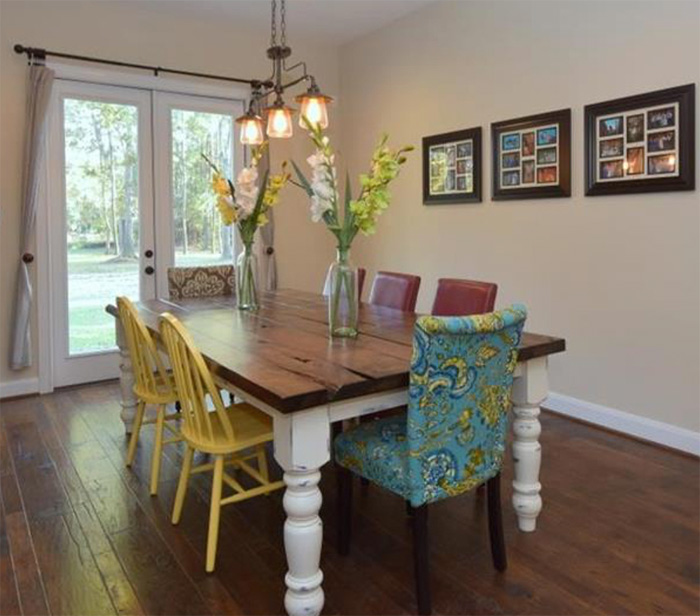 Very simple but elegant. I am really liking that farm table and the different seating styles – what a great idea. I’ve got my eye on that paisley chair!