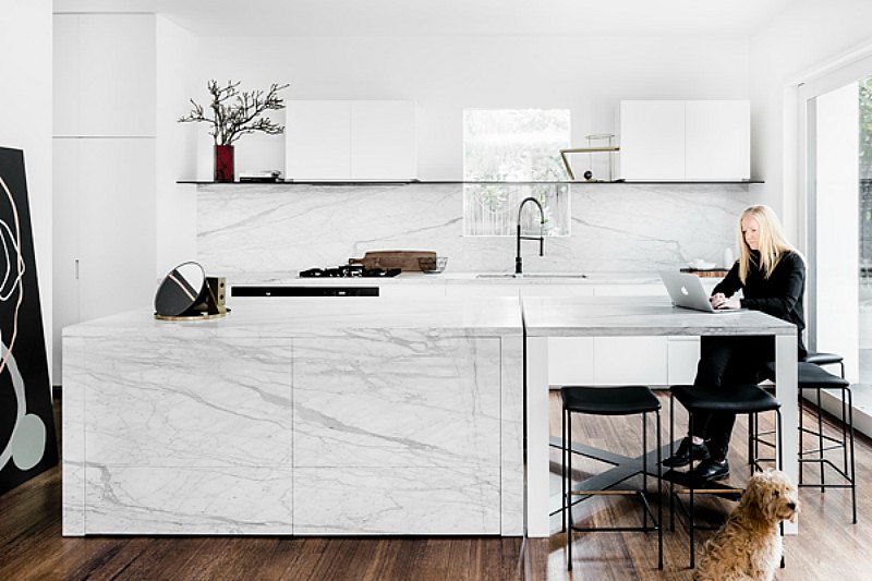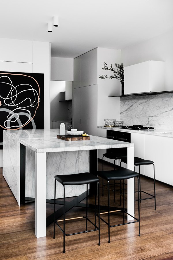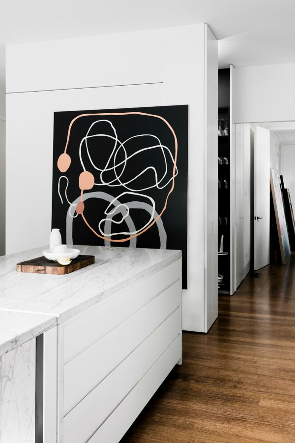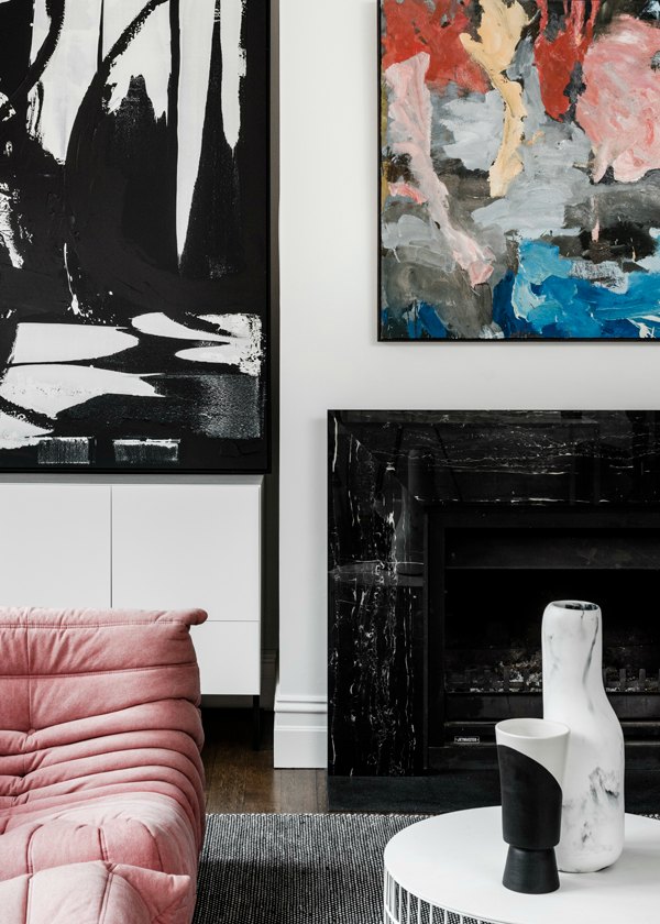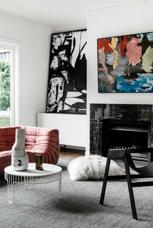 This renovation of a 1930s home sympathetically references the original Art Deco features while creating a thoroughly modern home for its art collector owner. Love the play of pink against the predominant black and white palette and, of course, the art. East Hawthorne House by Melbourne-based Meme.