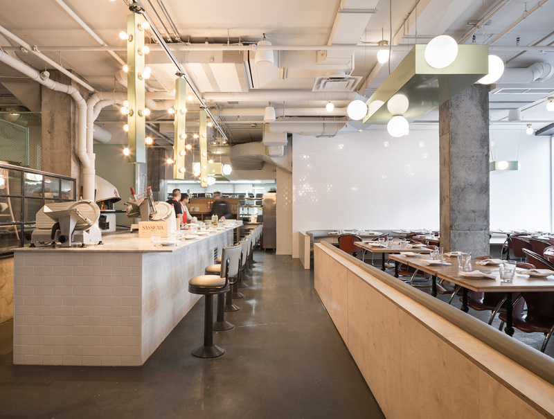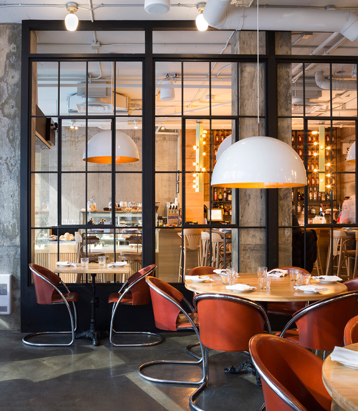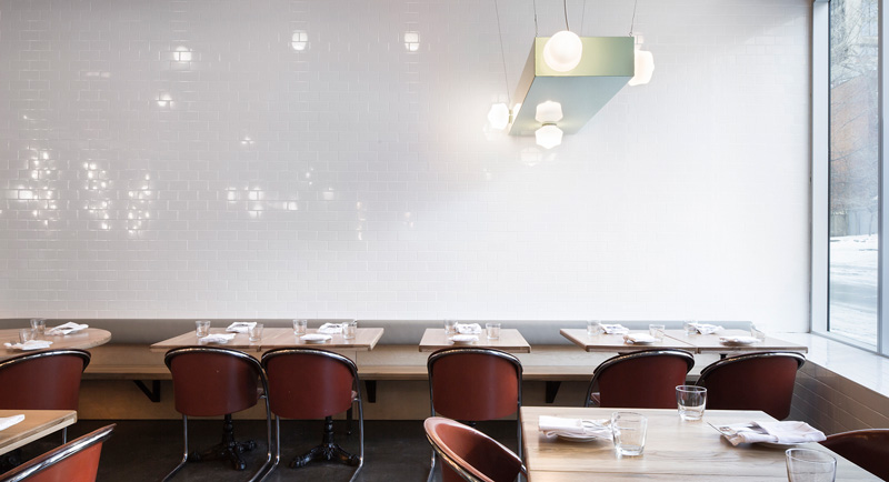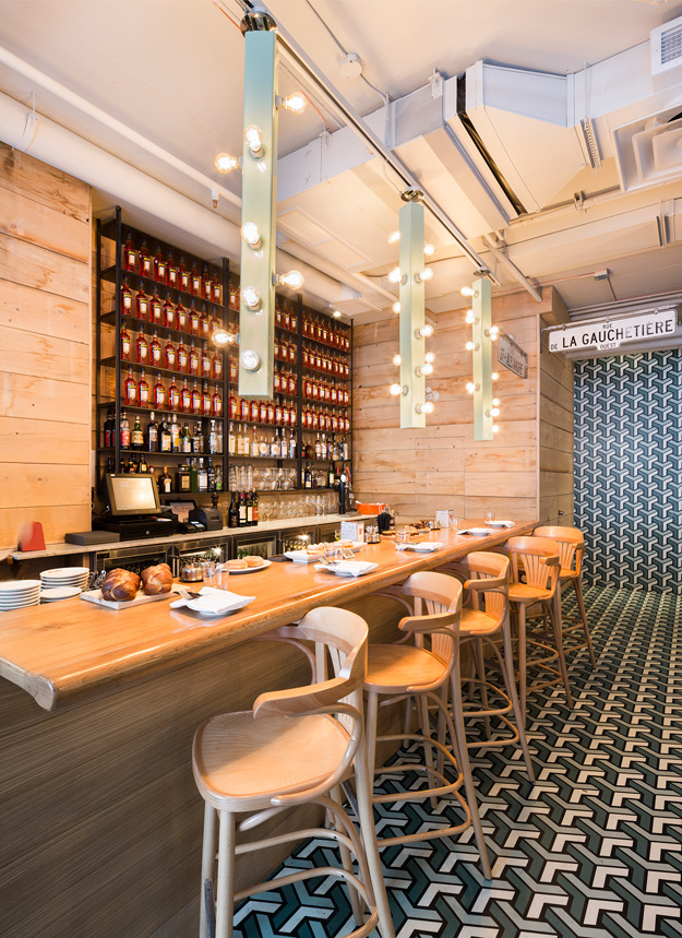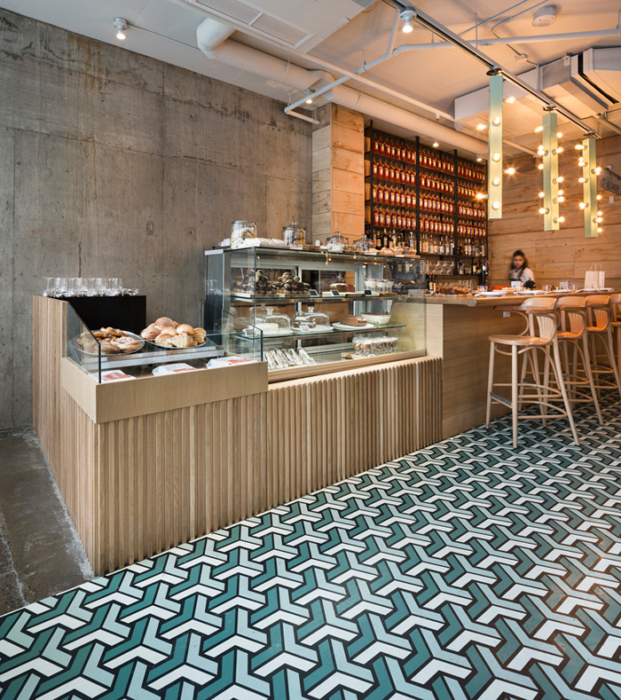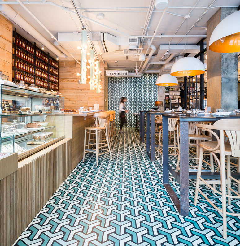 I was in Montreal Thursday to get the remainder of my lace tattoo sleeve completed (a word of advice – don’t get your elbow tattooed) and we were going to stop at a restaurant to eat a decent meal but then ended up just heading home and eating crap at a truck stop. Now I’m kicking myself for not having tried Fiorellino. This Italian restaurant is absolutely gorgeous. That graphic floor, all the spectacular lighting, those chairs…. And if the food is anything like the interior, then WHOA. Designed by Atelier Moderno (previous features here and here).