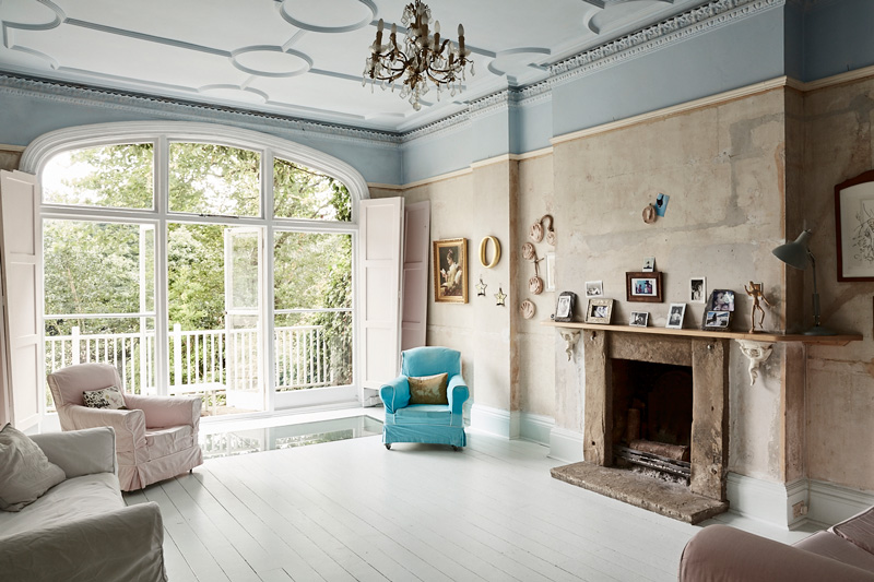 I wanted to share another British location home available via lordshippark.com. I am not usually much of a fan of pastel colours, but the large, rough around the edges reception room that is accented in pinks and blues is really pretty – especially the ceiling details. With a rustic, semi-industrial kitchen and an outdoor space to swoon over, this period home is cozy and so soooo lovely.