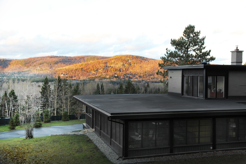 The new façade is now punctuated with large windows, especially towards the rear of the house, opening it up to the surrounding forest. White was used throughout the house to give a bright and sleek look. Elements such as the kitchen ceiling and the thickness of some walls were preserved, as a nod to the past of the house and its many transformations.