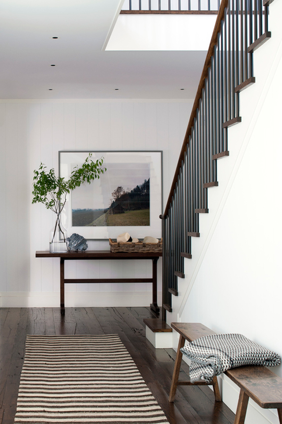 This home designed by Katie Lydon is soooo pretty! I mentioned in this post that her style is about bridging the gap between classic and modern and that is evident in this project as well. She took spaces with the most gorgeous rustic wood floors (I’m seriously dying over these) and architectural details that lean towards country cottage and added unexpected contemporary/modern touches that add some excitement.