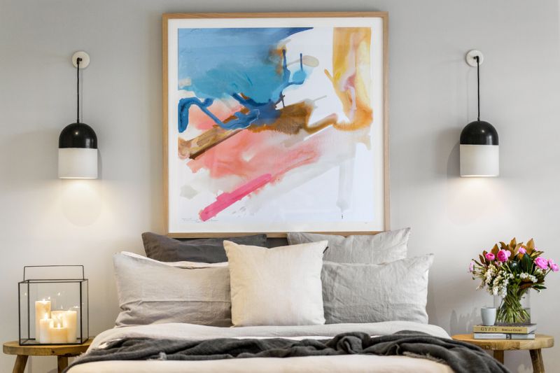 That painting in the bedroom is stunning. And the gold coffee table…ooh la la!!