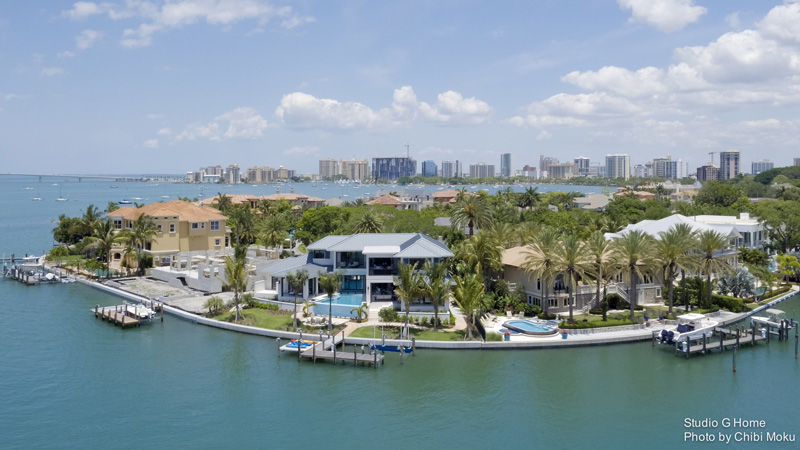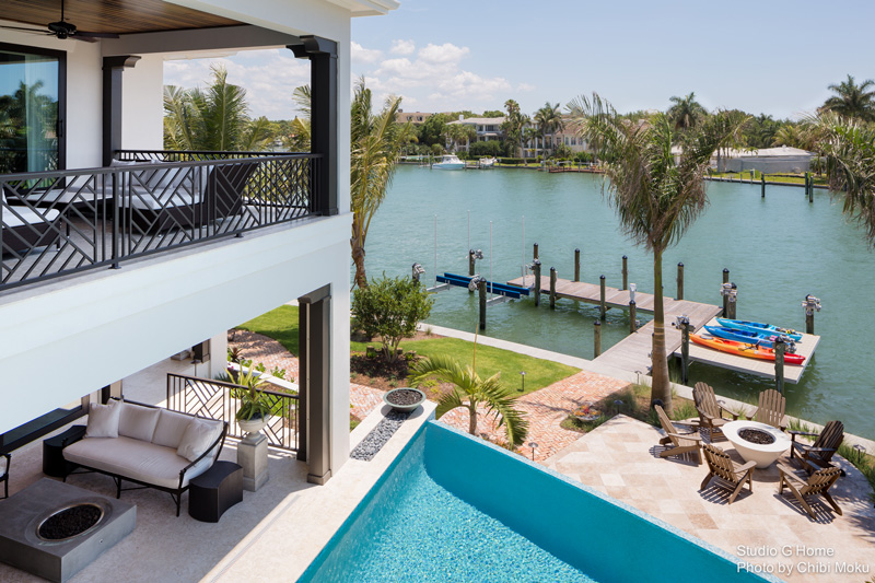 Living the coastal life in Sarasota Bay, Florida looks heavenly, especially now that fall has really set in here in Ottawa and mornings are frosty. This home could have gone way wrong (Miami-fied and over-the-top fancy-schmancy) but it is beachy and contemporary and about as casual as you can get in a house this grand, and OMG how gorgeous is that kitchen backsplash?! Great job keeping things cool Studio G Home. (Builder: Steve Murray Homes Photos: Chibi Moku)