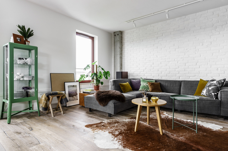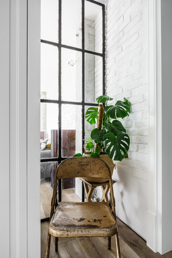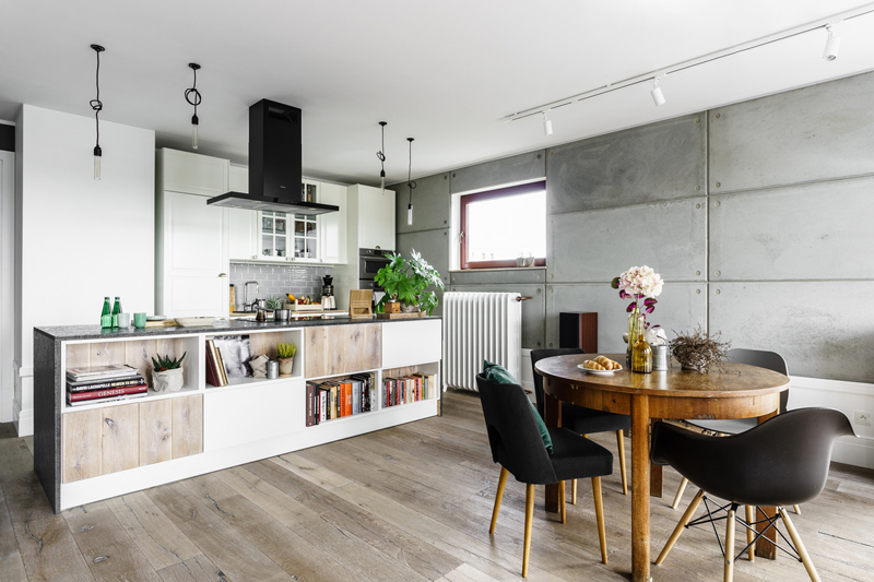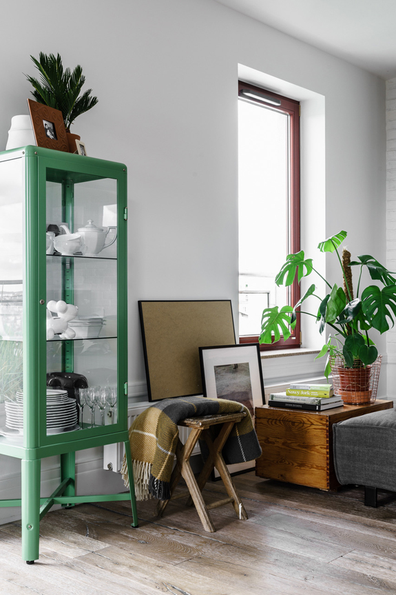 I have featured MANY interior design projects by Polish designer Lucyna Kołodziejska over the years but this one is hands down my favourite. This “soft loft” is located in Gdynia on the Polish coast. Home to a couple and their toddler, they wanted the look of a New York loft so concrete and bricks were exposed, vintage radiators and new flooring with a rustic look helped with the loft vibe, along with some vintage furnishings to outfit the space. The homeowners even got creative and made the sink cabinet in one of the bathrooms. I adore the accents of green (yay plants!) throughout, and with black/white/grey the colour scheme is spot on. A++++