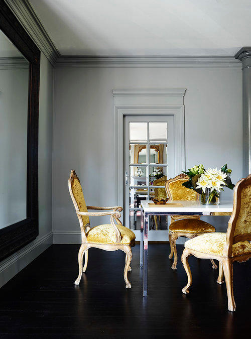 Everything has been replaced, re-painted or re-stained. The floors, like in the dining room, were stripped and re-stained with Minwax’s Classic Grey. The walls are Farrow & Ball’s Downpipe with Plummett on the ceiling. These 2 colours are incredible and in my top 5 colours of all time. Especially Downpipe – it can look green, yellow, blue, black depending on the amount of light coming in the room.