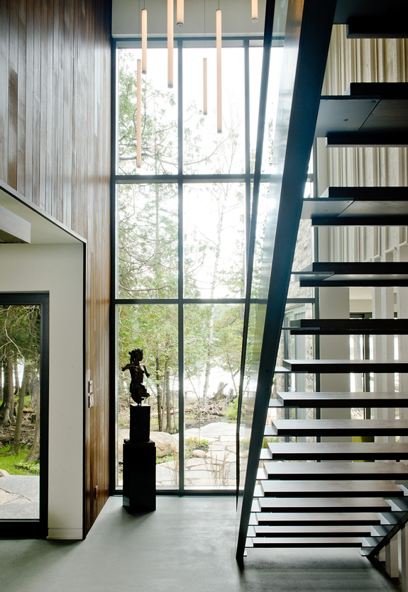 In the midst of a cedar forest on Lac Gate in Quebec is this wonderful modern chalet designed by Montréal-based architecture firm BOOM TOWN. It is absolutely stunning inside and out. I can imagine enjoying the lake and the outdoor spaces in the summer and hunkering down and hibernating in style and comfort in the winter. (Photos: Angus McRitchie)