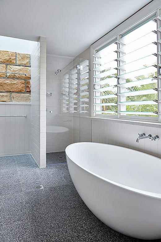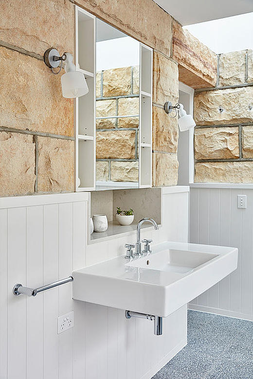 It sits solidly on the site like the sandstone outcrops which are a feature of the Sydney landscape. This substantial family home at Palm Beach by Bentley Design is evocative of beach side living but not in the sense of driftwood and sea foam, more stone against the wind and spray. Beautiful position, beautiful home to suit.