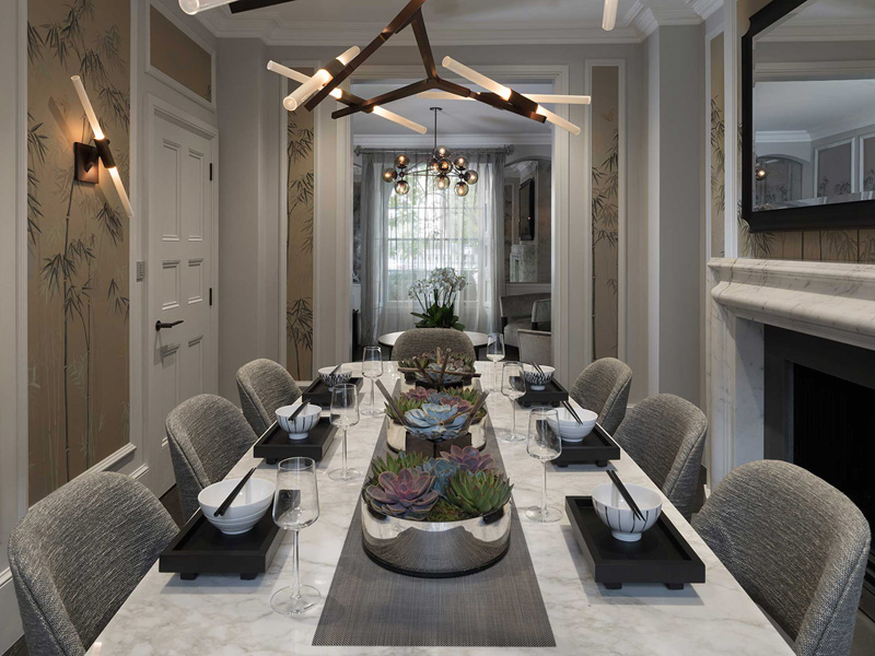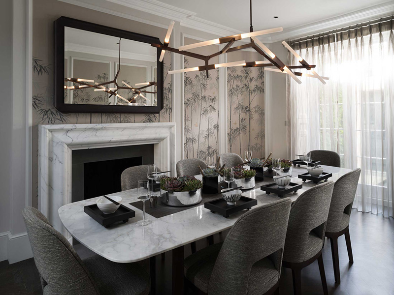 This home in Knightsbridge, London is a great example of taking traditional architecture and giving it a contemporary, elegant, and sophisticated update. The chinoiserie panels, velvet upholstery, marble fireplaces, statement light fixtures, modern kitchen and other touches make this home gorgeous and glamorous. Hats of to Staffan Tollgård Design Group for nailing this one. (P.S. Send in your pets on furniture entries to kim[at]desiretoinspire[dot]net or tag them in IG with #dtipetsonfurniture)