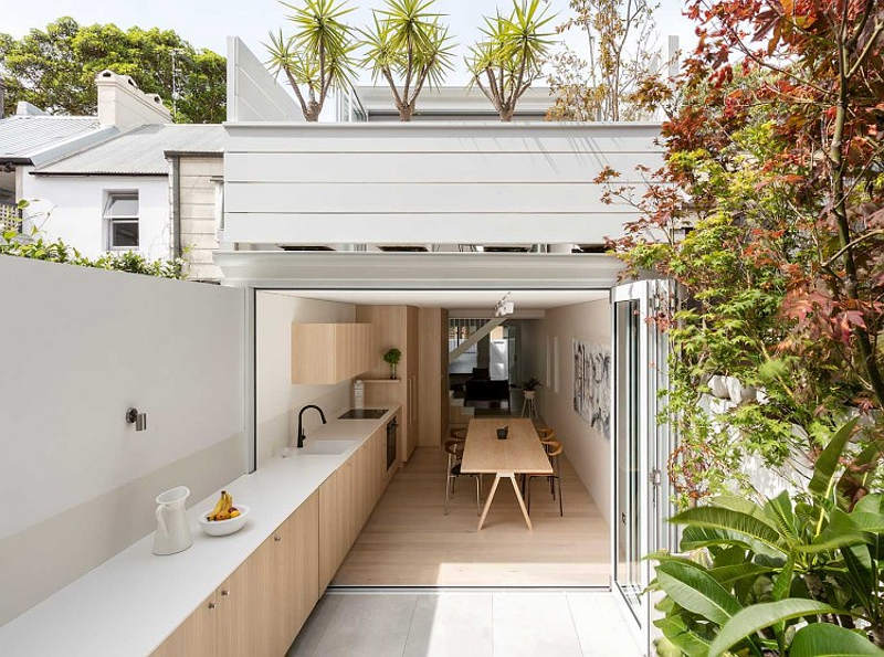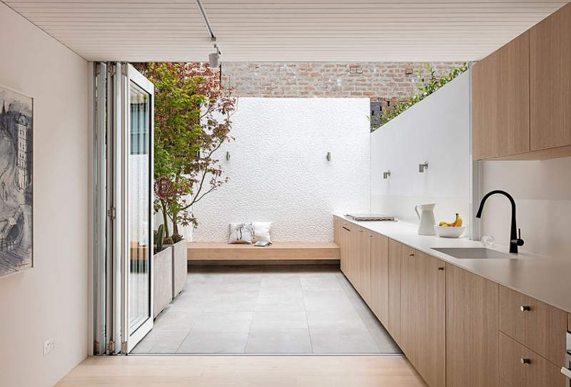 It’s as if this small inner-city Sydney terrace house is opening its arms to the outside. The kitchen diner extends into a petite but stylish courtyard garden while the bedroom has its own private deck. We Australians adore this inside out living but what I love most about this house is the natural light that floods into what would have originally been a dark and claustrophobic house. Surry Hills House by Benn & Penna.