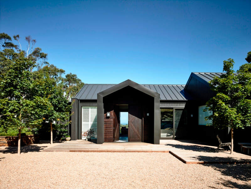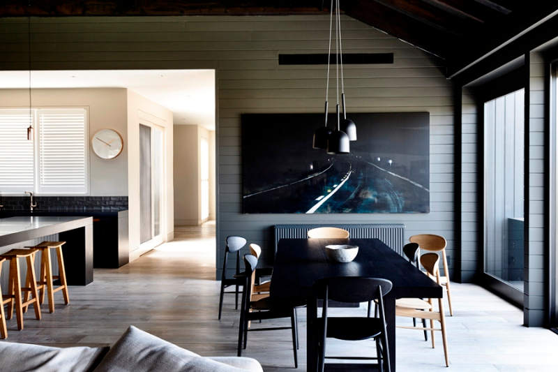 Canny Architecture‘s renovation of this house in the country meets sea town of Flinders, Victoria is dark and moody, chic and sophisticated, a contemporary take on a traditional farm house. Love the dark interiors, not only stylish but perfect for hiding from the blazing Australian sun.