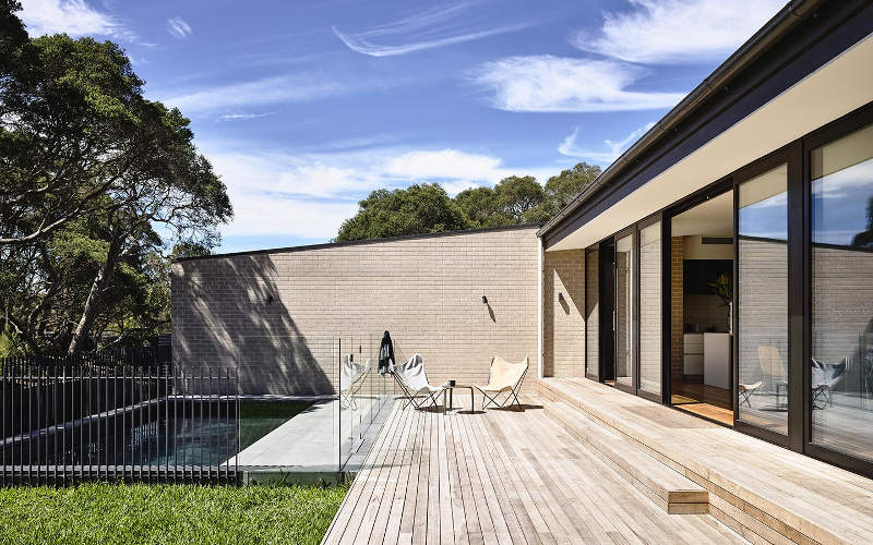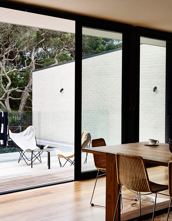 Are you old enough to remember blonde brick? I am. Just the thought of it has me cringing. Many crimes against design sensibility were committed in the 70s in the name of the insipid blocks. Fortunately the 80s saw the popularity of blonde bricks wane, replaced by their chocolate counterparts. (Urgh! Dark brown bricks with tumbled edges… that’s a horror story for another time.) Back to blonde bricks or should that be that blonde bricks are back. Loving this contemporary home with a retro vibe at Sorrento on Victoria’s Mornington Peninsula. A series of pavilions make this holiday house just perfect for a getaway by yourself or with a crowd, this blonde beauty is by Melbourne-based residential design and construct company InForm.