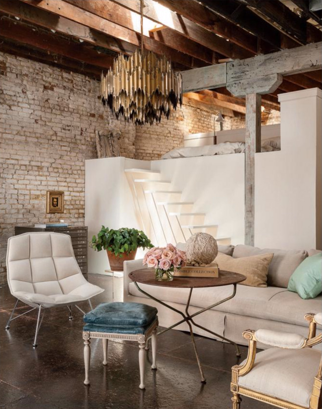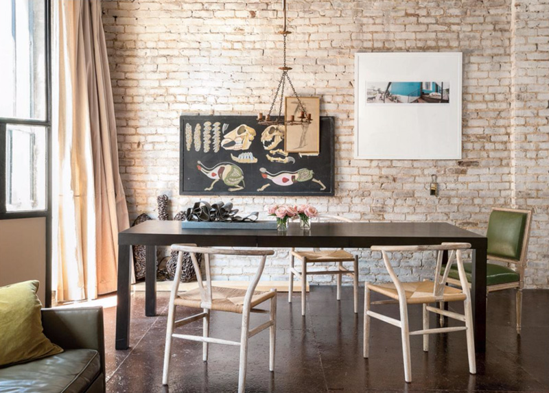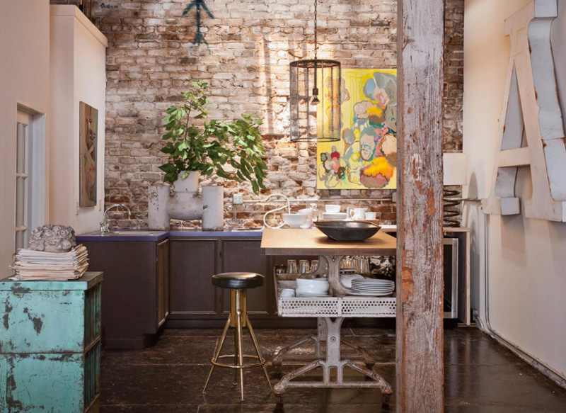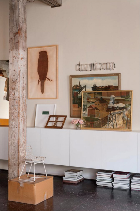 I continue to have a soft spot for lofts and this one with classic and feminine touches mixed with vintage industrial pieces make this so perfectly eclectic. And how freaking brilliant – a bank of Ikea cabinets installed console-style with an antique cupboard mixed in. Saving that one in my inspiration folder! By Houston, Texas based FOUND (a partnership between Ruth Davis and Aaron Rambo).