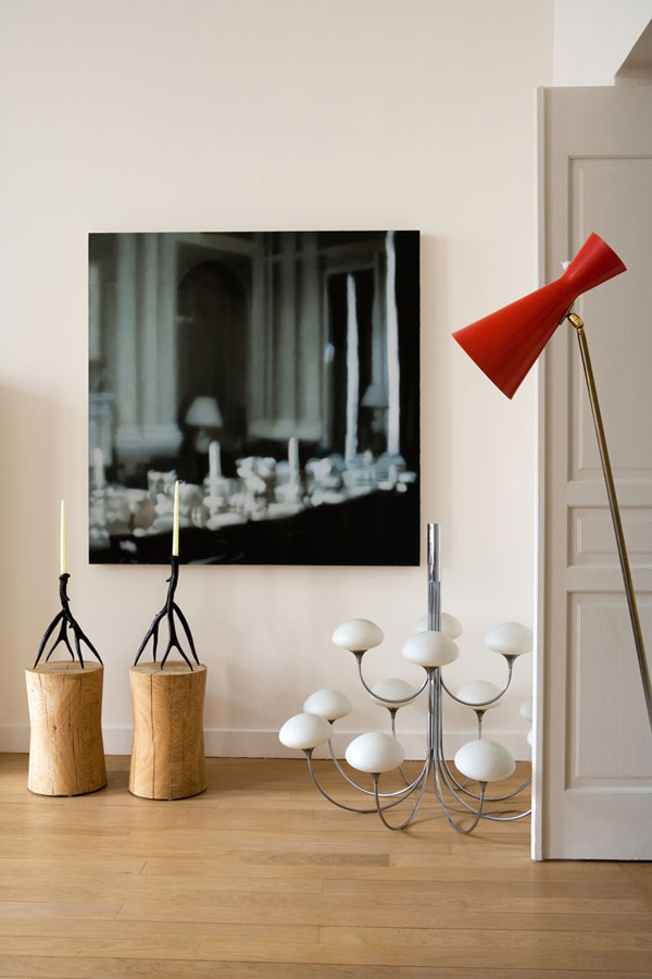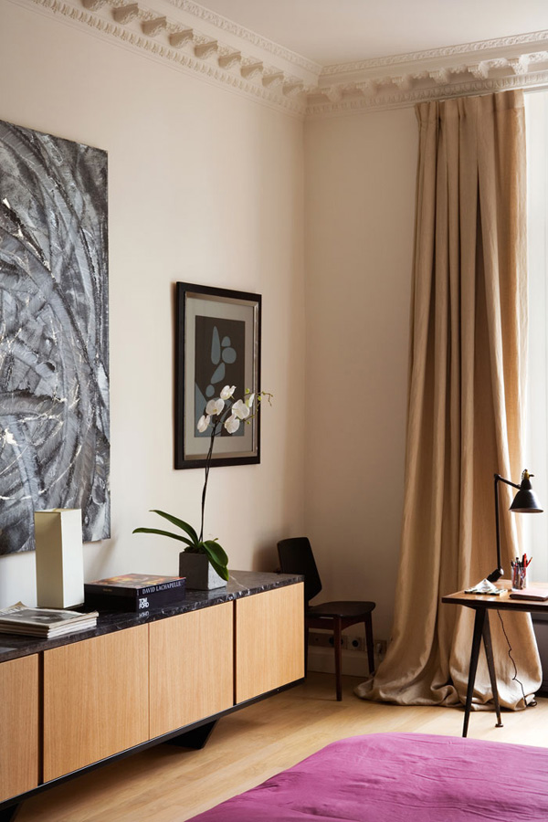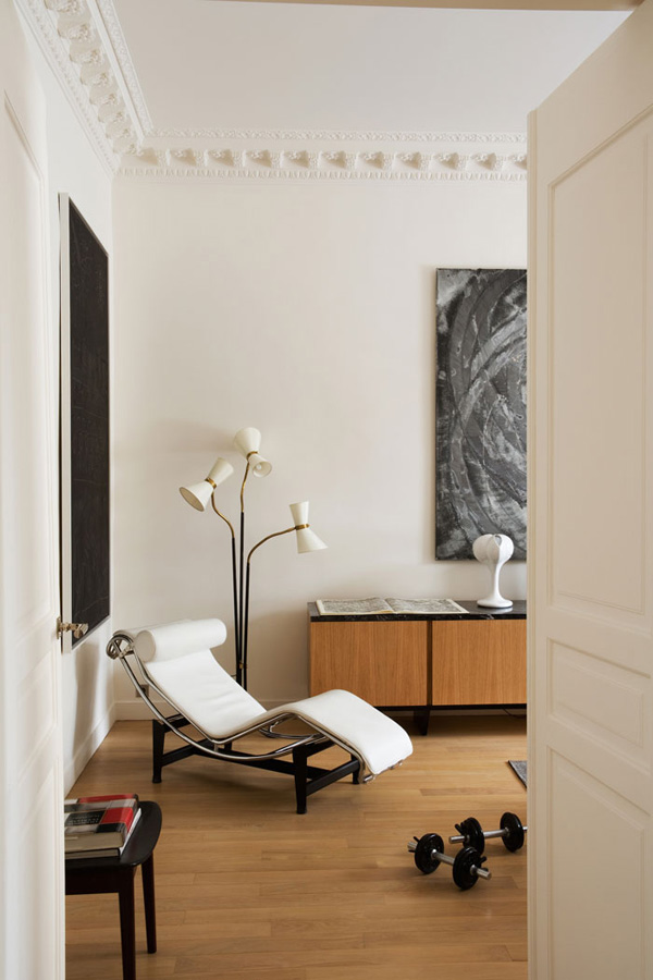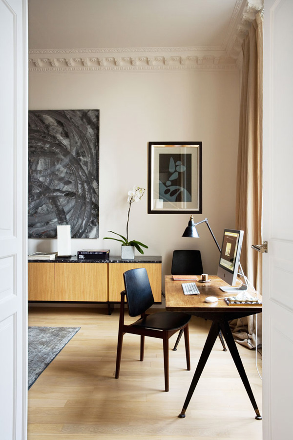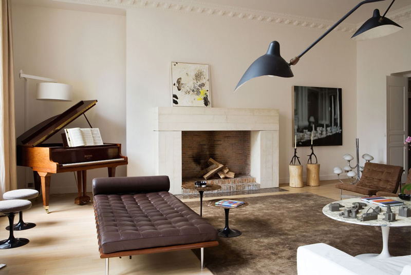 The coolest apartments are always in Paris. This one is by Monaco interior architect team Humbert & Poyet. A stunningly simple fireplace, graphic artwork, classic furnishings by the likes of Eero Saarinen, Mies van der Rohe and Serge Mouille combined with tall ceilings and to-die-for moldings make this apartment in Le Marais a total dream. (Check out another one of their projects here)