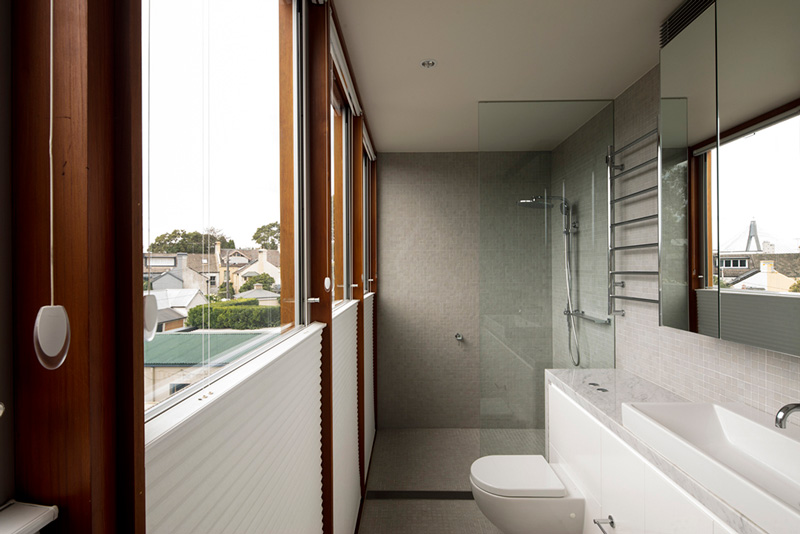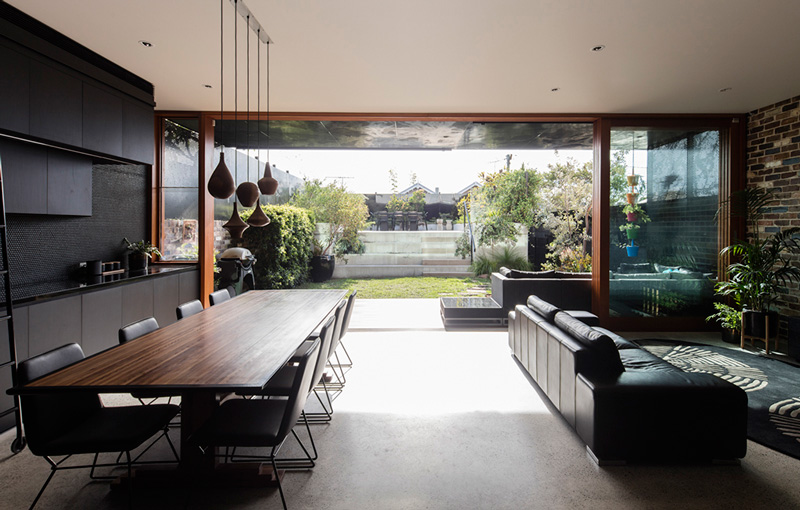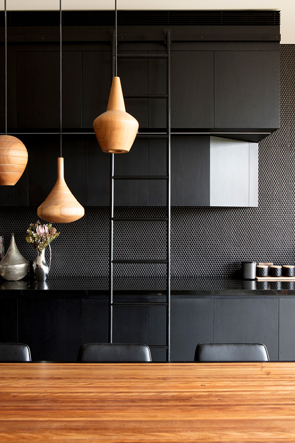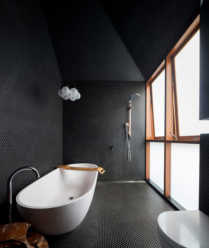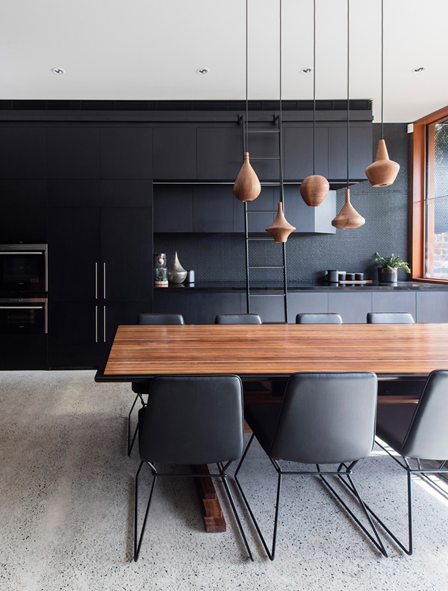 When a home is totally unassuming from the exterior and then you walk in and POW! The dreamiest of black kitchens complete with black penny round tile backsplash. (Man I love black kitchens! So sexy!) But it doesn’t stop there….a bathroom completely clad in black penny rounds? YES PLEASE!!! Screen House by Australian architecture firm Carter Williamson.