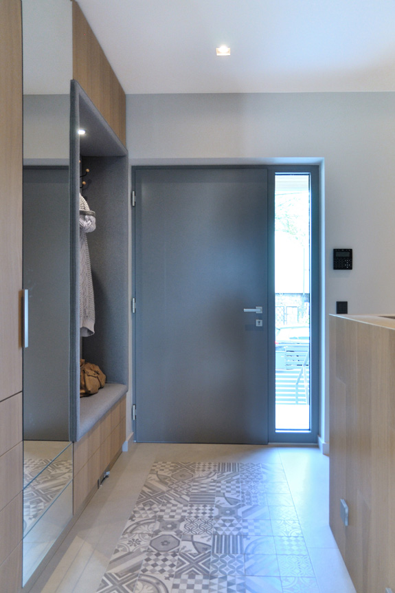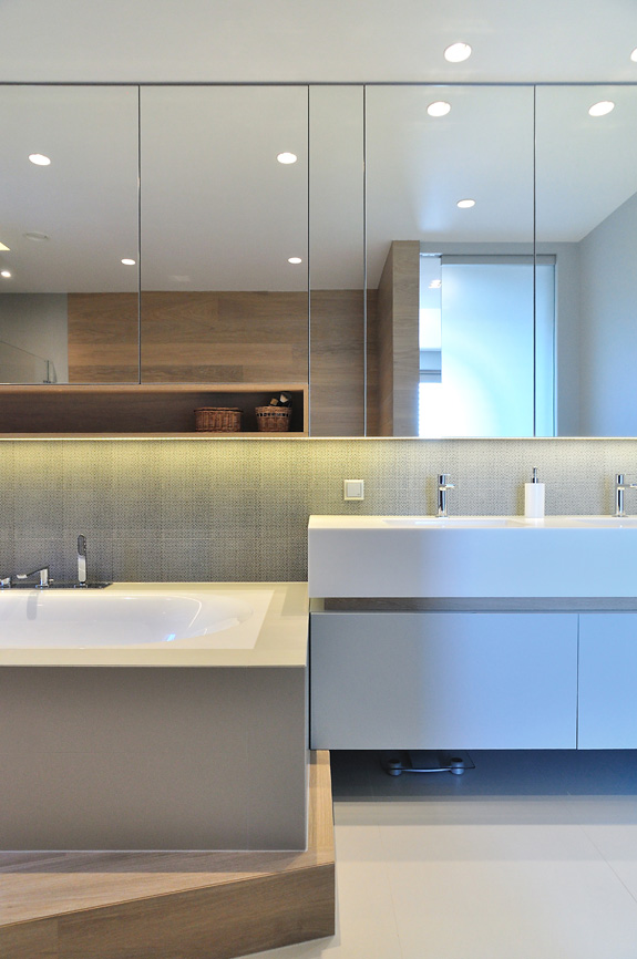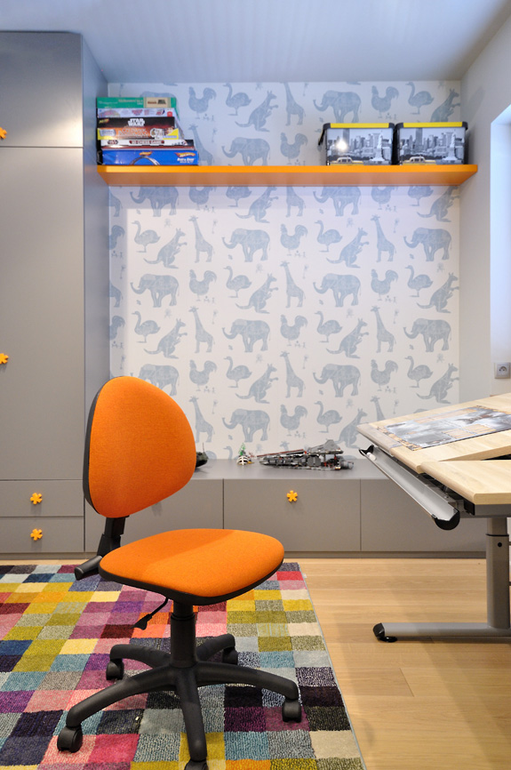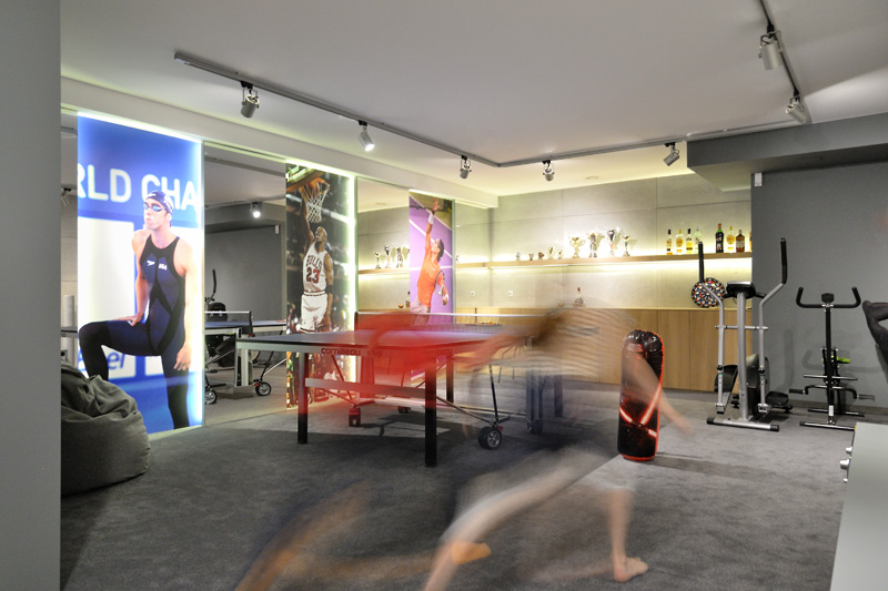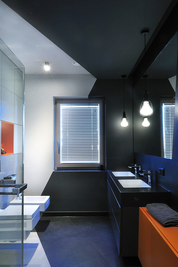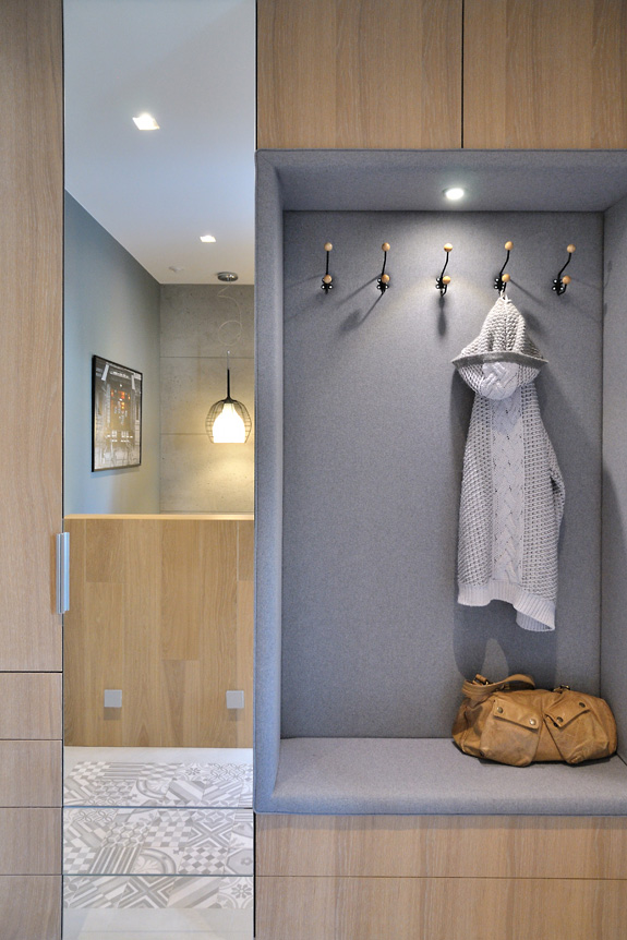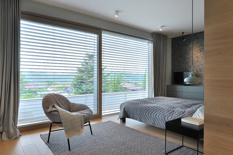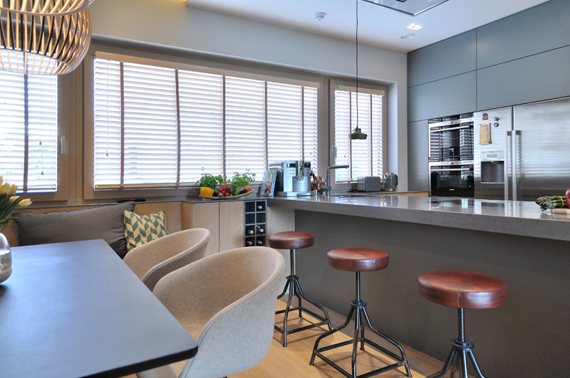Marcin and Magda Konopka of Polish design firm Ministerstwo Spraw We Wnętrzach (Ministry of Interior Affairs) has sent us photos of one of their latest projects. The other day I featured a “small” apartment in Sweden and was told that 71 m2 is not small by Swedish standards. Okidoki, my last home was 800 sq ft and yep, it was small! In this case though I think I can safely say this is a HUGE house at 300 m2 and no one is going to argue that fact. MSWW has created a warm yet modern home with light oak clad walls and floors, concrete elements, a grey colour scheme, comfy furnishings and some fun lighting. (More of their projects can be found here)