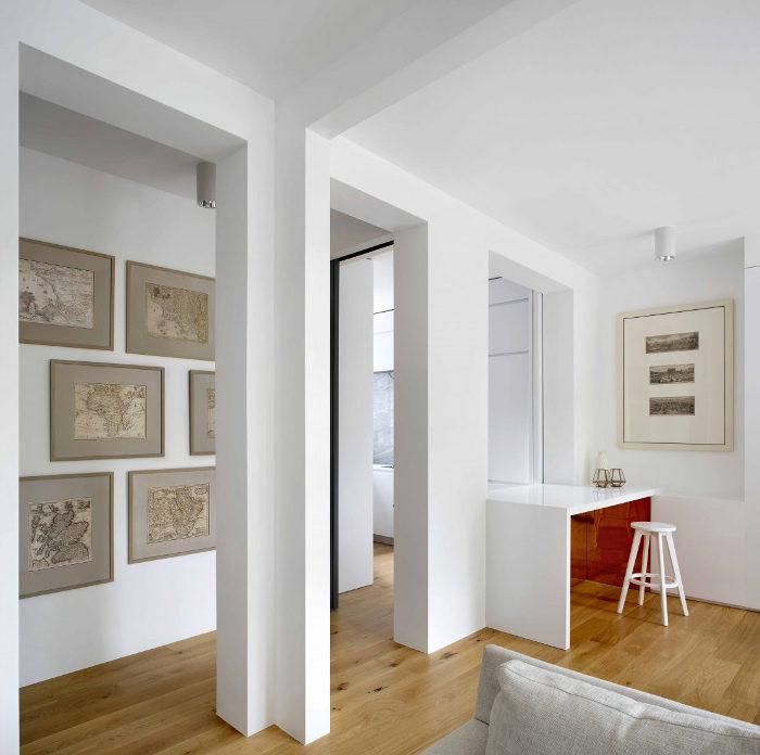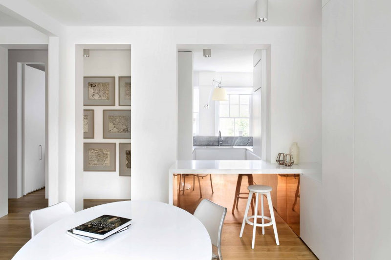 I love a door, don’t you? It swings, it folds, it slides, it hides. The joy, the serenity of closing off the cluttered, the dirty, the ugly with a well designed door. Not that there is anything but a calm, almost zen-like quality to this contemporary mansion flat by London-based extrArchitecture. It’s like a beautifully crafted puzzle box.