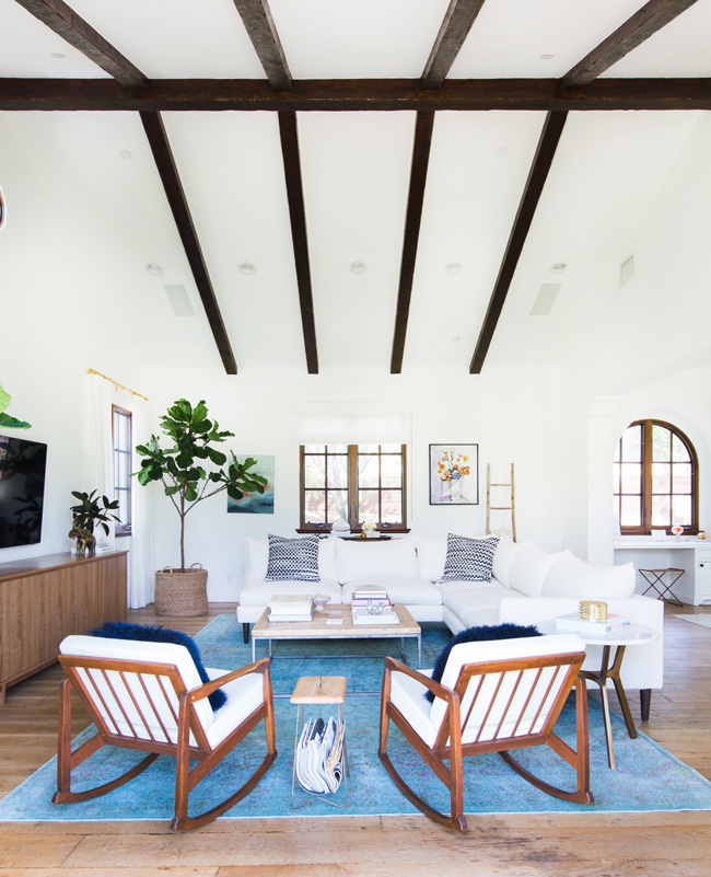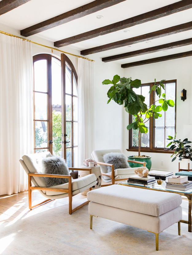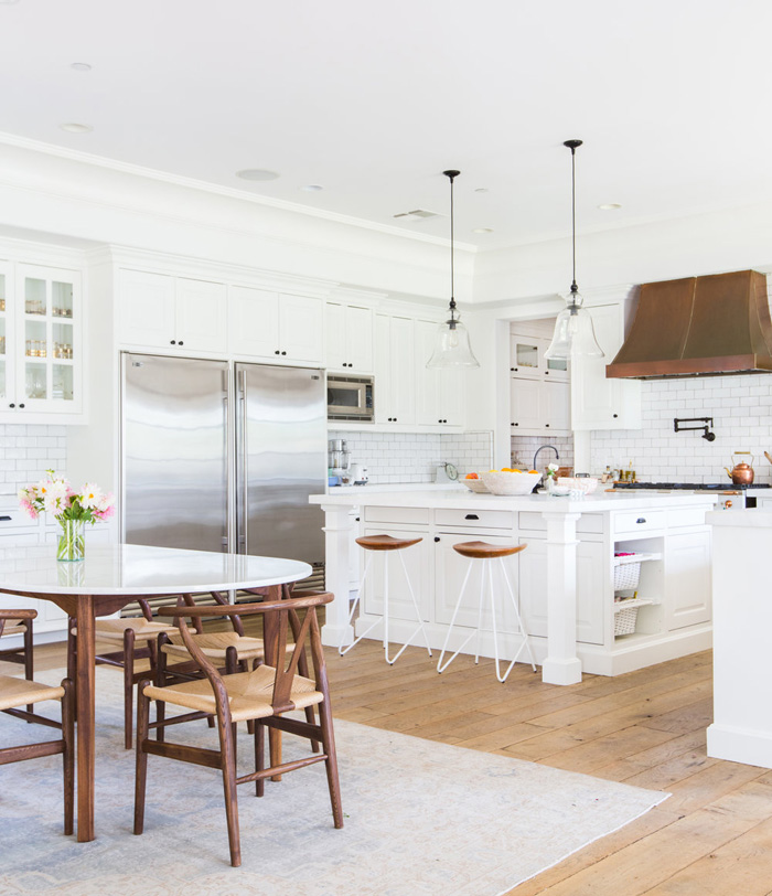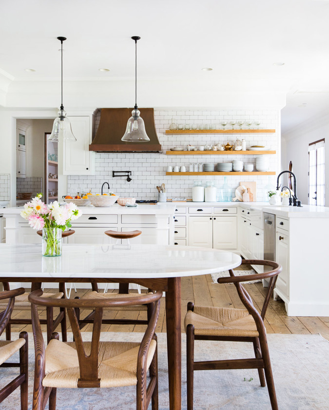 I was crushing hard on this home designed by Venice Beach, CA based interior designer Katherine Carter, and then I discovered the homeowner is Lauren Conrad. 🙂 It is really beautiful – so bright and I adore the casual-elegant vibe. That large white kitchen with black hardware and subway tiles makes me forget I have a thing with black kitchens. And then that dining room! And the Ellie Cashman wallpapered dressing room! Gorg!!! (Photos: Tessa Neustadt)
