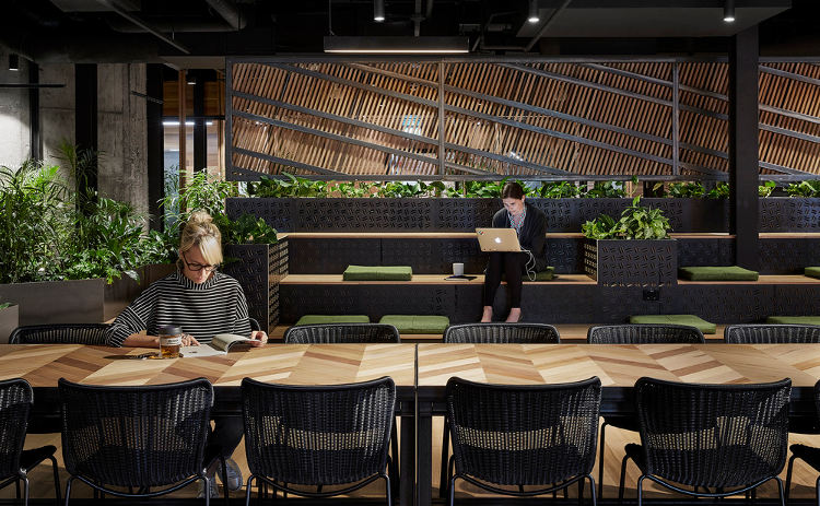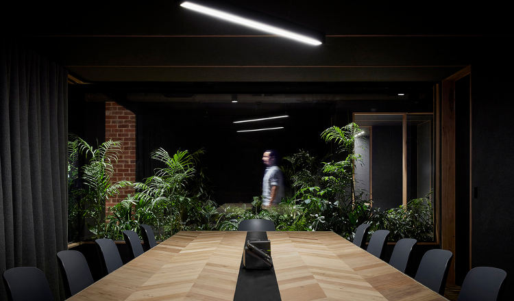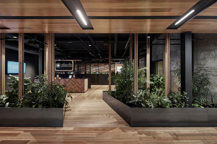 What is it that I’m always going on about? Something to do with dragging yourself into work on a weekend? Are yes! It helps if it is somewhere stylish. (Dark and moody with a jungle of indoor plants helps too.) Slack Melbourne Office by Breathe Architecture.