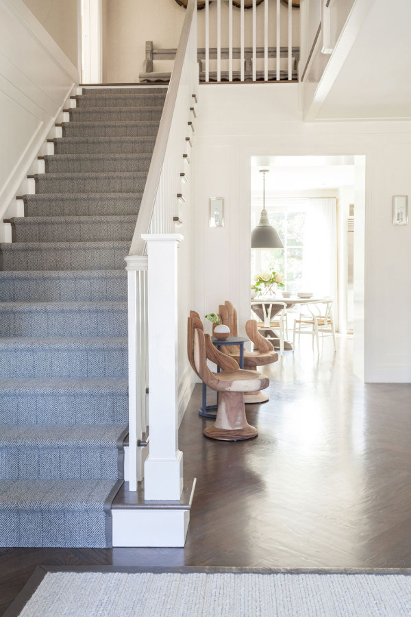 From its traditional facade all the way up those stairs to the colourful attic room this house is the perfect balancing act. Farmhouse yet modern living, the crisp bite of white and the deep moody greys, parent and kid friendly. Casually elegant, not at all stuffy. It’s fresh and fun and perfect for a young family. Modern farmhouse in Connecticut by New York based interior designers Chango & Co.