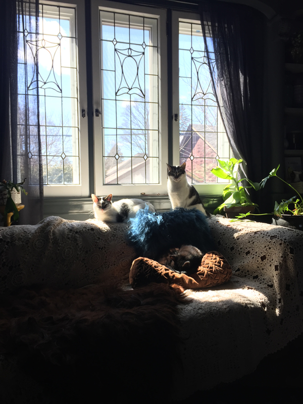 And from me: my cats are sun worshippers like me. In the late afternoons on sunny days they can be found in packs huddled in sun beams.