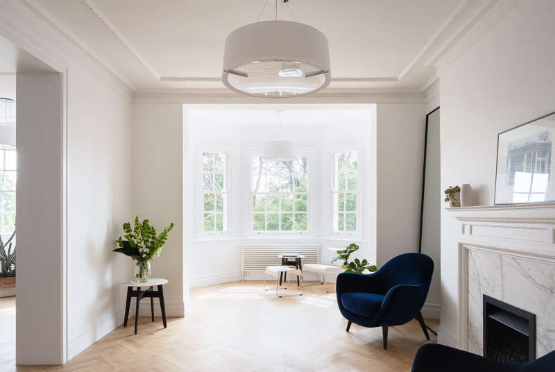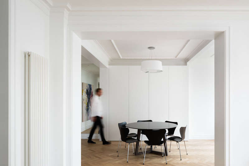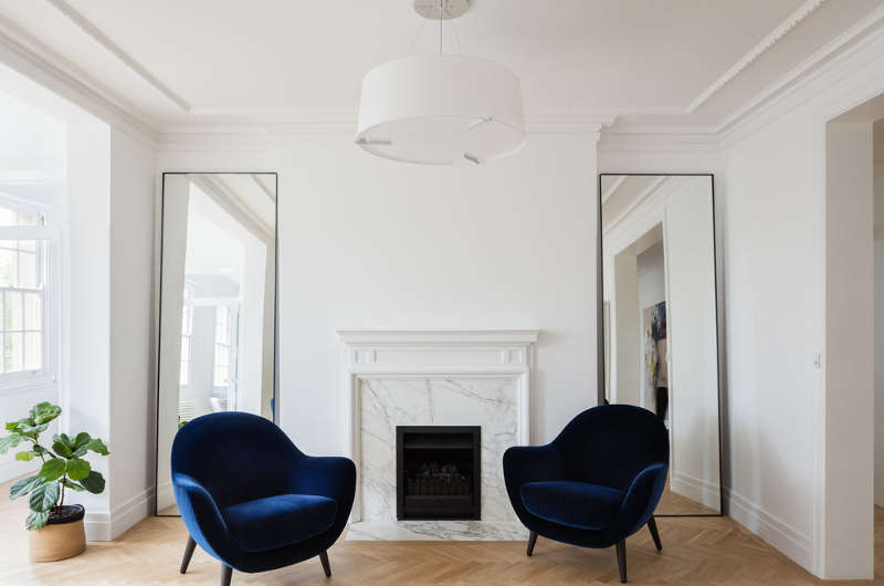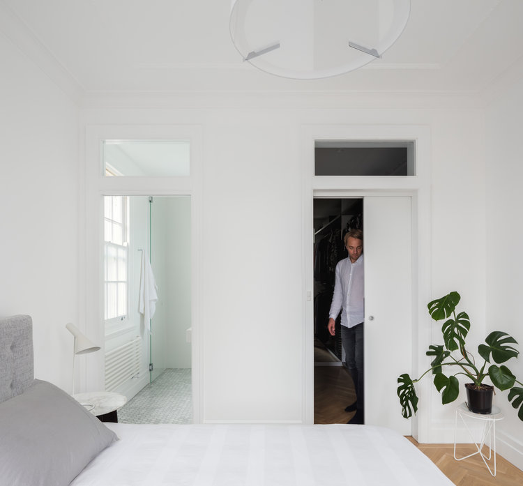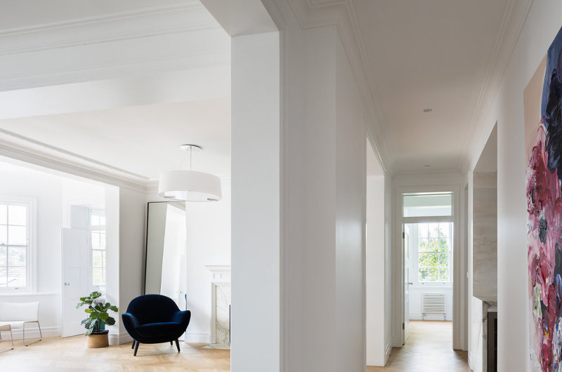 Traditional and minimal where jewel colour pops against wedding cake white, open space replaces a rabbit warren of old rooms and the light, oh the light. K Apartment, a rethinking of an Art Deco apartment by Sydney-based Marston Architects.