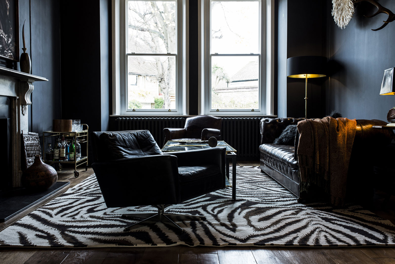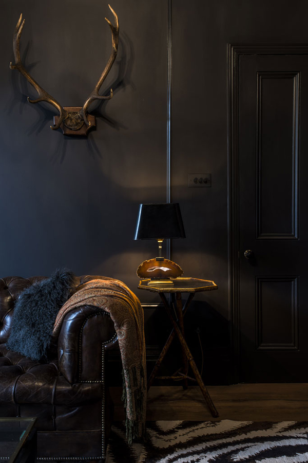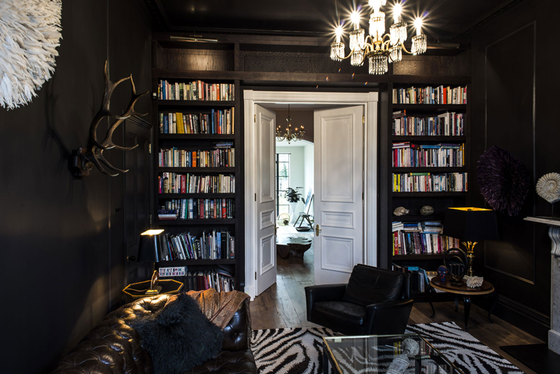 I am head over heels in love with this British family home in Barnes and its striking decor. Full of character and drama while a bit on the classic side and pared back. A gorgeous black library complete with black leather chesterfield (*GASP!!!*) and an eclectic mic of vintage and modern furnishings and lighting make this just all kinds of awesome. By Sarah Mitchenall and Alexa de Castilho of Brighton-based Black Parrots Studio.