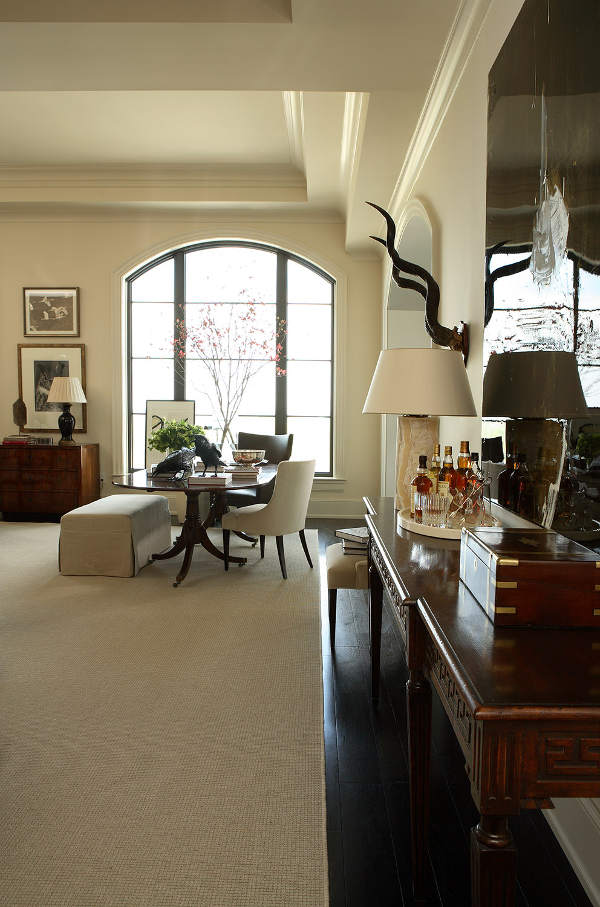 Sophisticated and elegant with an emphasis on the details, this room, by Robert Brown Interior Design, is more than a living room. It’s a salon, a gathering place, a carefully curated space for the meeting of like minds. I love the choice of areas to sit, to work, to relax, to interact with friends or simply to turn the pages of a favourite book. It is a room of personal treasures with a muted palette and luxurious finishes. Traditional and refined.