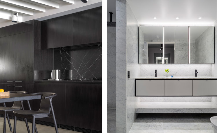 Clean, contemporary lines. Minimalist with muted colour palette. Of the moment but with the slightest touch of high 80s style adding interest. Richmond Residence by Harrison Interiors.