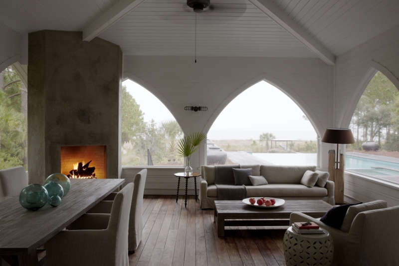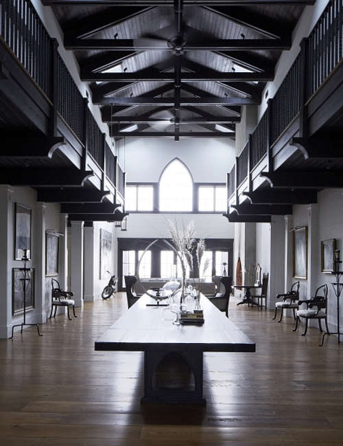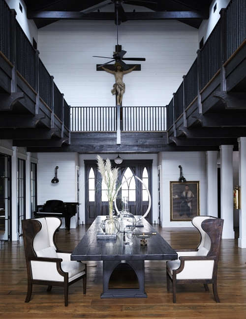 It’s American Gothic (painting) meets American Pickers (television). It’s dramatic and moody and quirky and fun.It’s intimate spaces and soaring ceilings. It’s theatre and performance, oasis and sanctuary. It’s John Mellencamp’s Island Retreat in South Carolina by interior designer Monique Gibson and it’s fabulous.