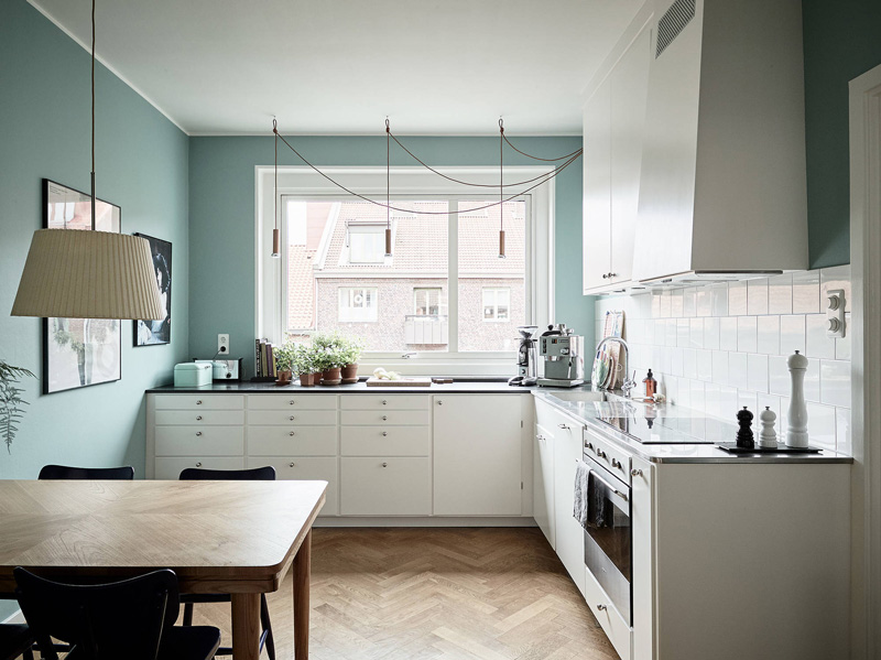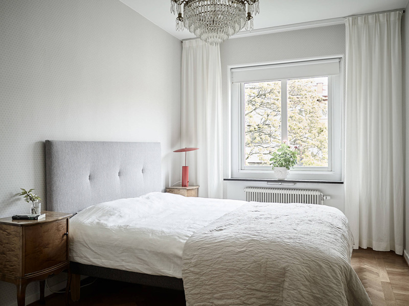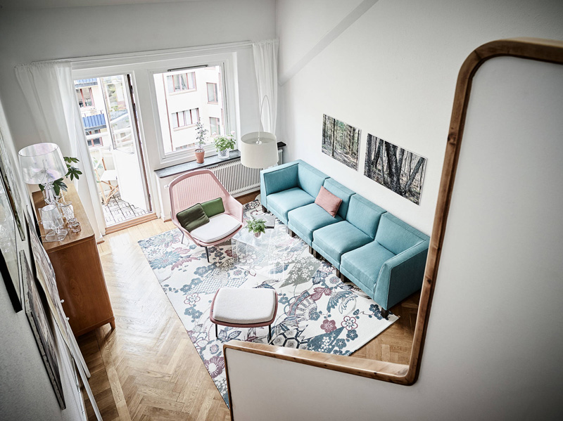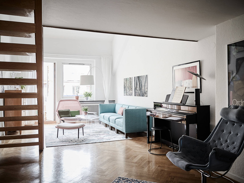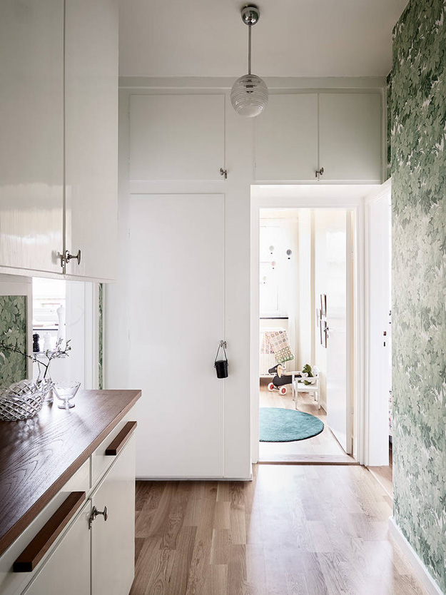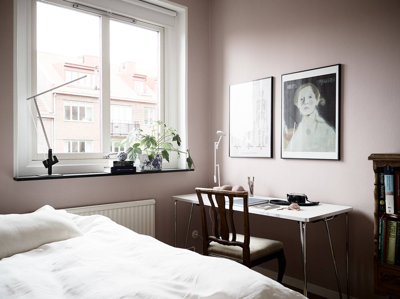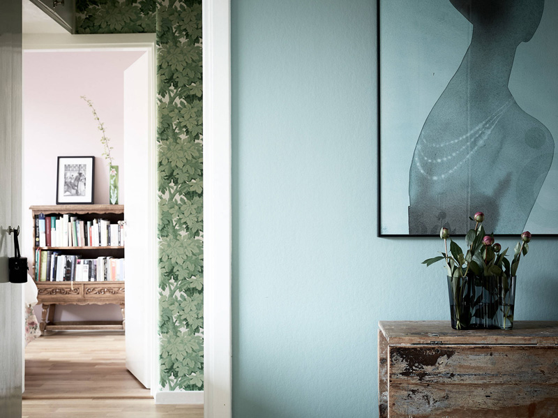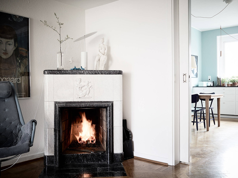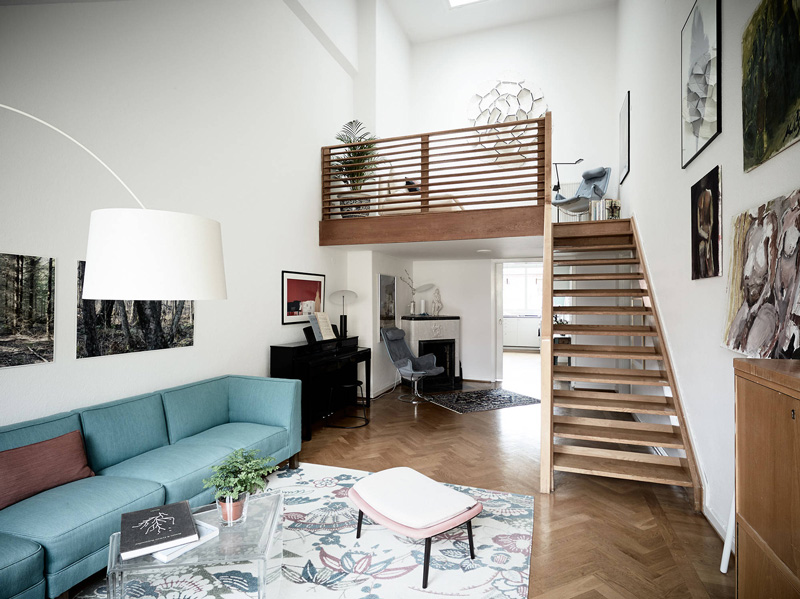 I absolutely adore this apartment for sale in a 1930s buidling in Gothenburg. Many of its original features have been lovingly restored to its former glory such as the beautiful wood floors, limestone window sills, wardrobes and fireplace. Add in some pretty pastel walls, a bit of wallpaper, some gorgeous art and modern furniture, and a bonus mezzanine space and you have quite a beauty. (Thank you Silje for the link to this space on Stadshem).