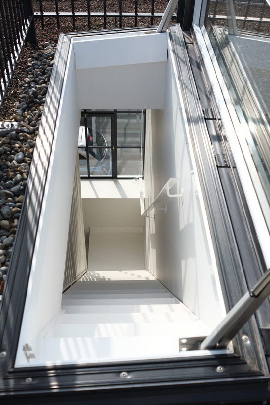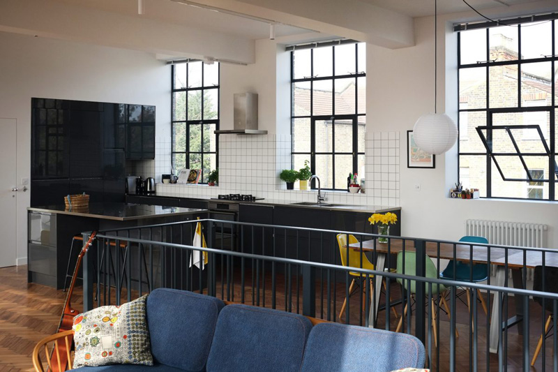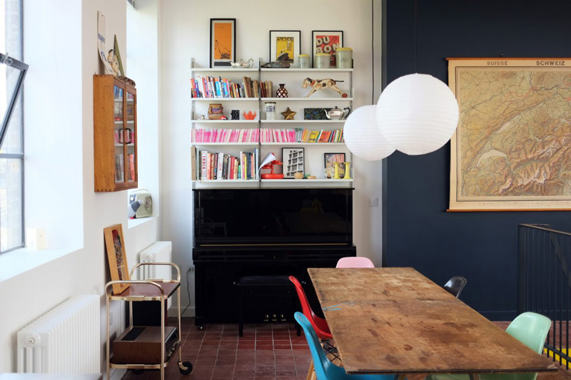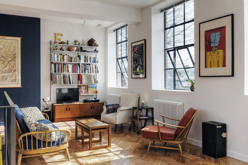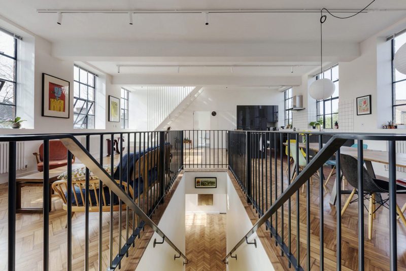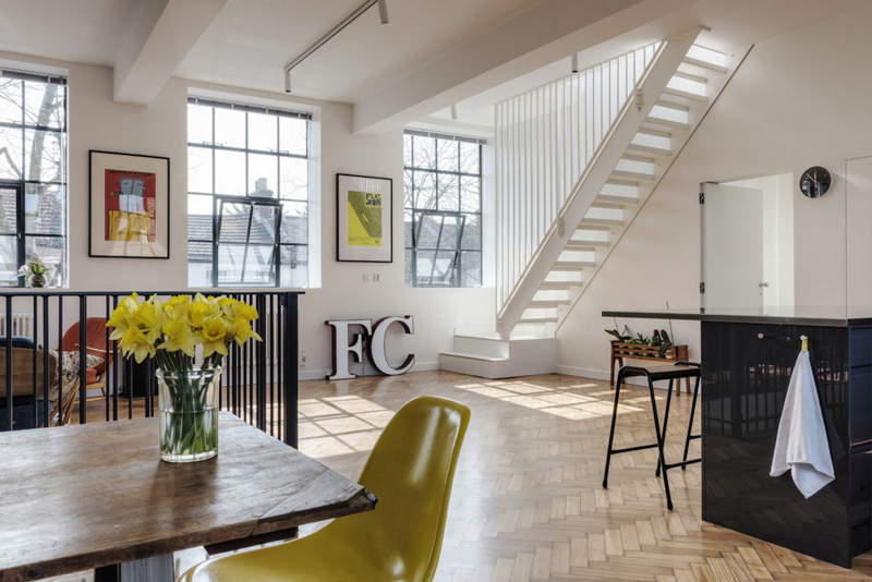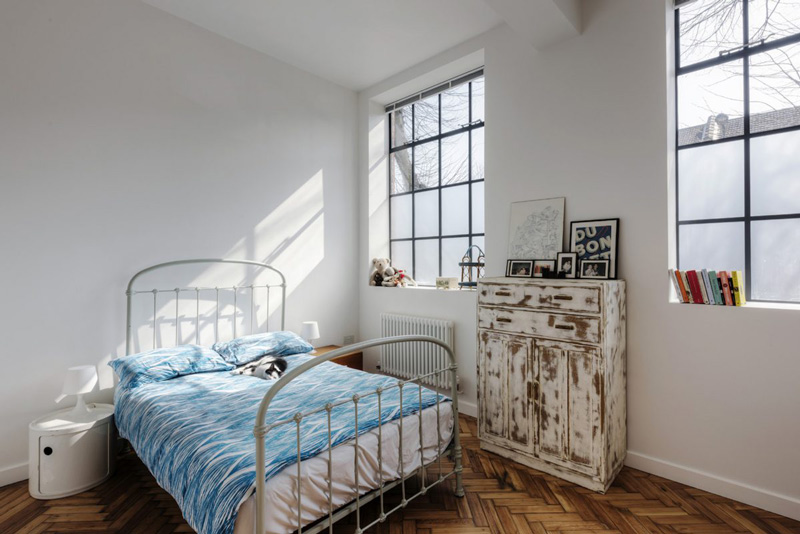Oh, to have such a space where in one afternoon you can totally rearrange everything you own. The joys of living in lofts and conversions. This 1935 former school canteen/science lab/art department in the U.K. is an incredible space – 2,000 sq ft arranged over two floors, plus a 1,000 sq ft roof terrace featuring to-die-for steel windows throughout and equally to-die-for original pine herringbone flooring. Available as a location space via Shoot Factory.