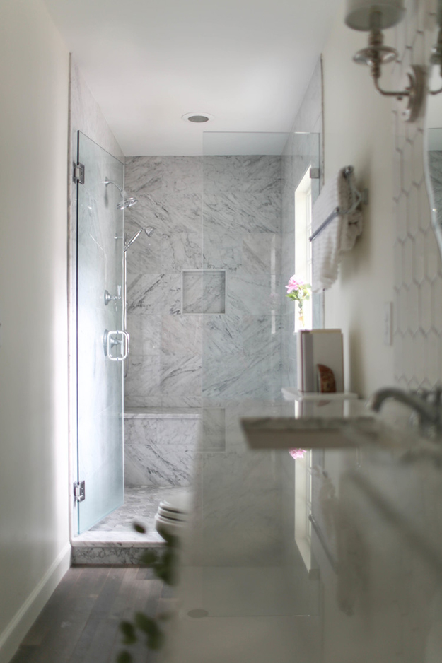 My quest for pretty, timeless bathroom inspiration continues (while I dream about having the time and money to renovate mine), and these two from the portfolio of Jamie Krywicki Wilson are lovely examples of how to keep things simple yet elegant.