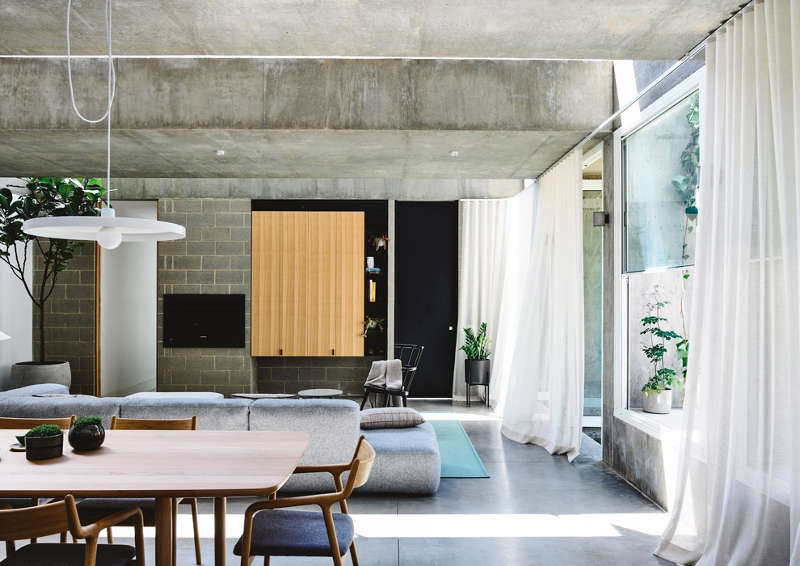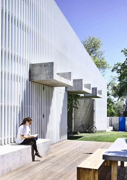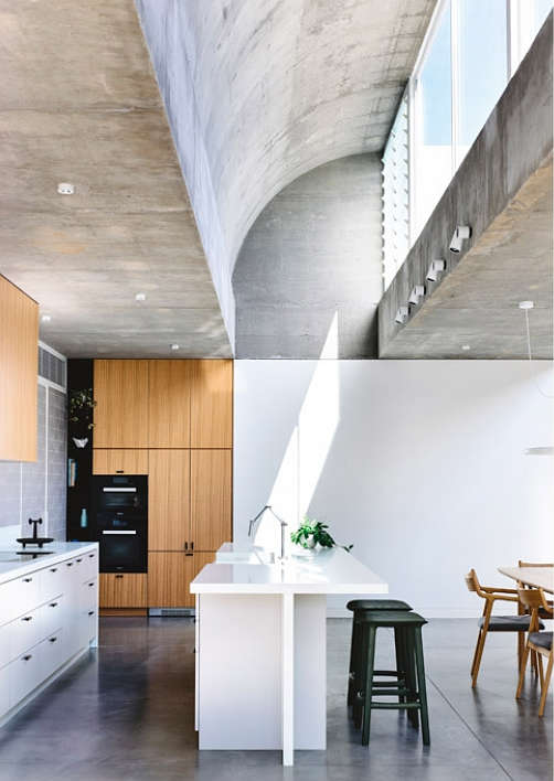 My second minimalist white house for the day. Home as art with vaulted concrete ceilings and clad with aluminium slats referencing the gables of the neighbouring houses. Moving House by Melbourne-based Architects EAT.