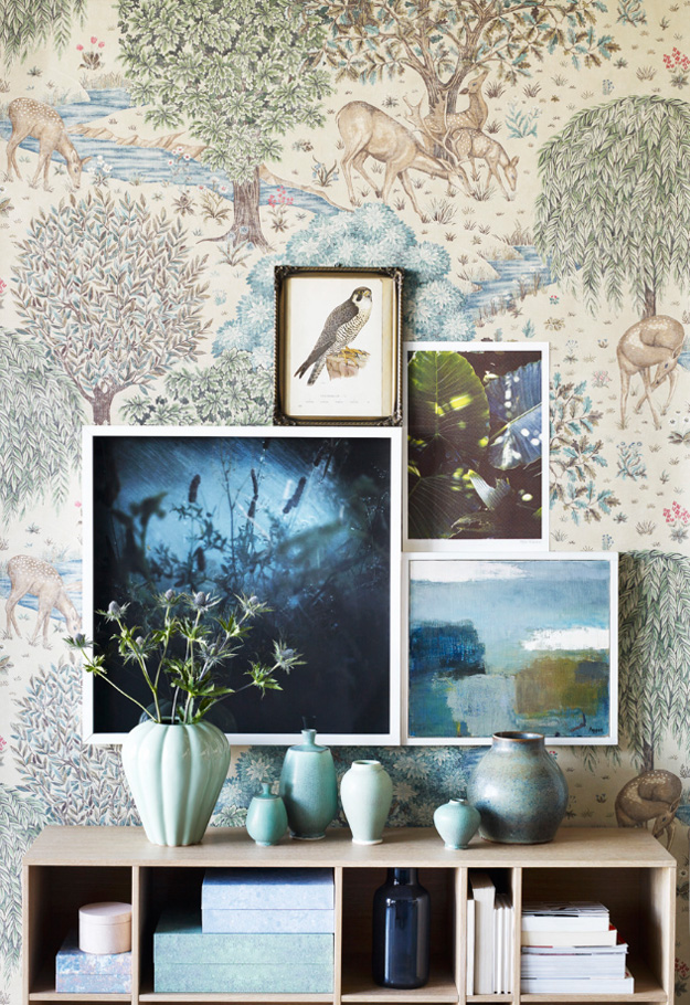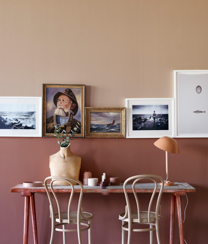 Stylin’ spaces just right until they become totally picture perfect. Love the work of Stockholm based stylist/decorator Linda Åhman. Also totally digging the photo below with the 2 tone wall with a border of photos. What a great idea!