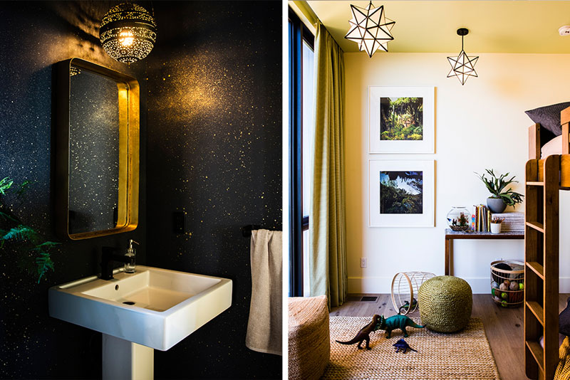 The narrative of the Sunset Bay Area Idea House grew through an embrace of the Northern Californian lifestyle that values fine art, craft, fresh produce, and nature. The curated interior features innovative materials & artisan finishes to promote warmth to the contemporary shell. The light oak floors and warm white walls provide a soft backdrop for rich wall coverings, custom millwork & newly introduced Heath tile to color the home. A William Morris print serves as a nontraditional kitchen backsplash and a metallic Brasscloth by Calico on the master bedroom ceiling subtly fades in tone, drawing your eye to the striking view of the San Francisco Bay. The design intention was to connect the Sunset Brand to the Geremia aesthetic, offering an opportunity to juxtapose accessible furnishings with curated pieces from our artisan friends and vintage resources. A number of Bay Area artists are represented through fine art, custom textiles, ceramics and process work direct from their studio. A beautiful home with beautiful views.