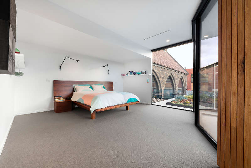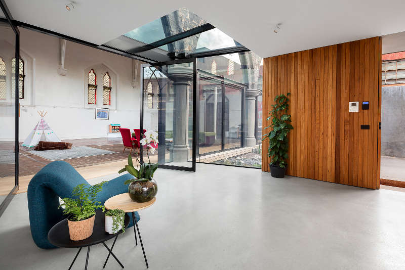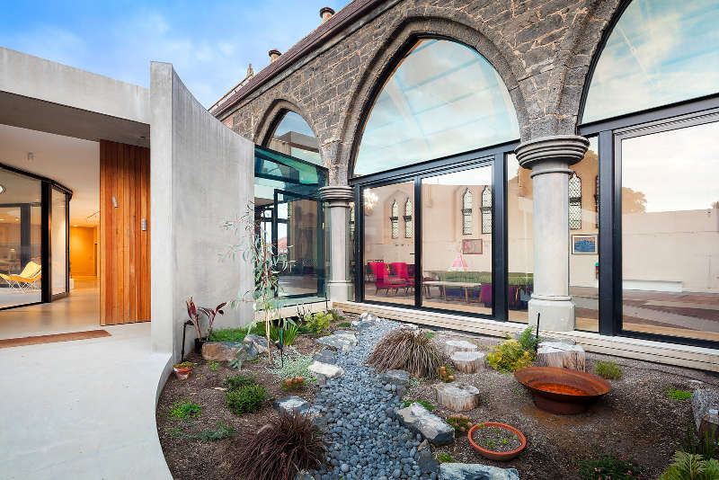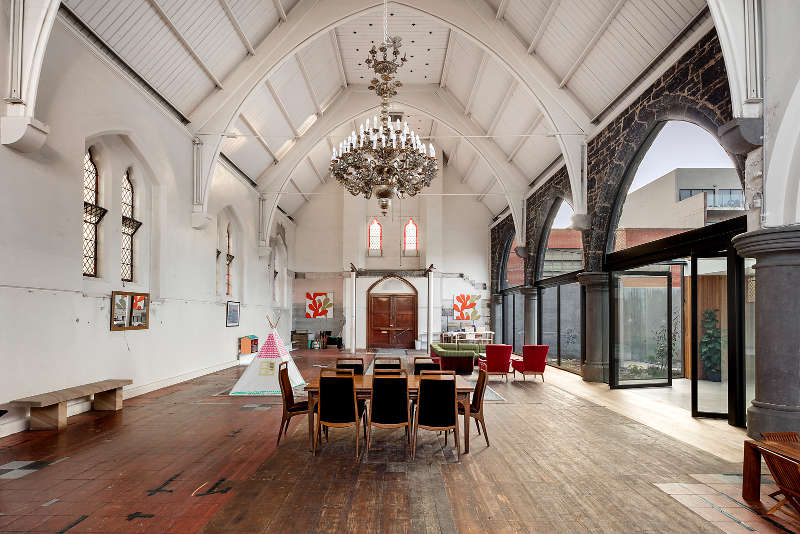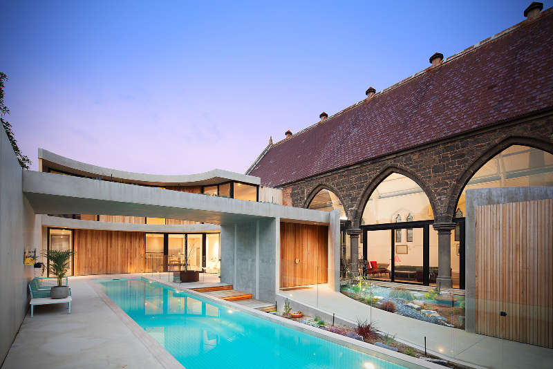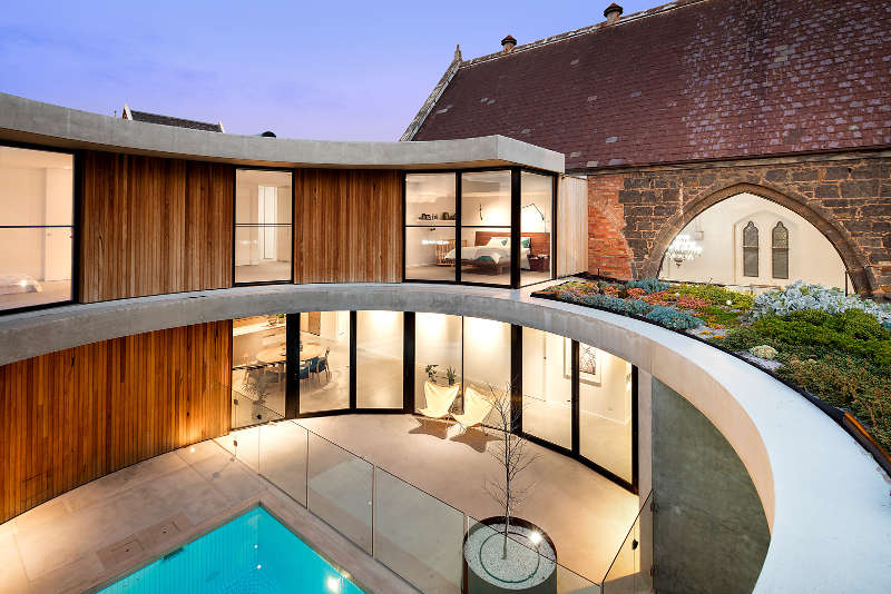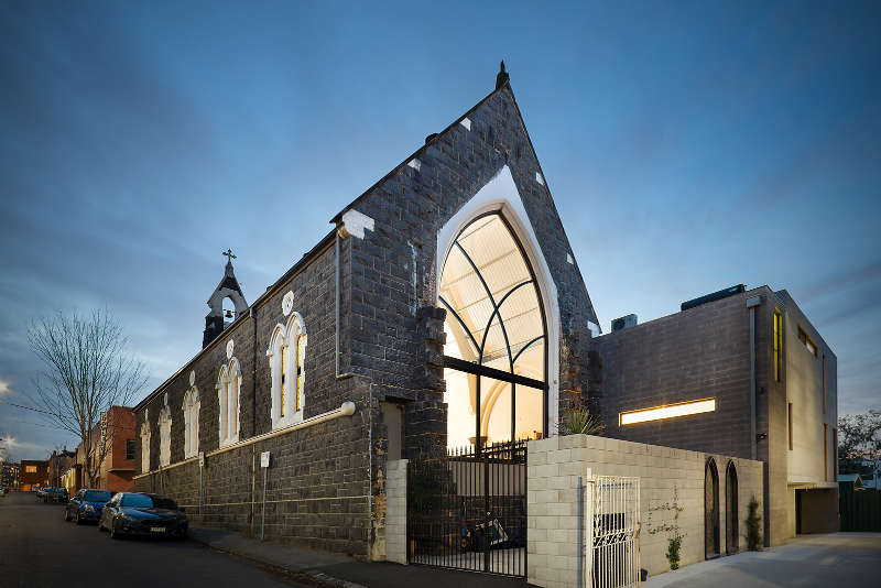 Kim and I love a church conversion. We have shared so many over the years. This “conversion” in Melbourne’s inner-city suburb of Collingwood is just a little bit different. It’s a church juxtaposition, a “house/church symbiosis”, a church and courtyard house Siamese twin configuration, a conversion without converting. The real estate listing calls it “Gothic Revival meets Neo-modernist design”. Whatever you call it it’s bloody brilliant. It’s by Kister Architects and is the architects own home. Watch the video for some insight into the design and also for some great overhead shots that really make the geometry come alive. The price, like the conversion, is OTT (of course) but what else would you expect? Link here while it lasts.