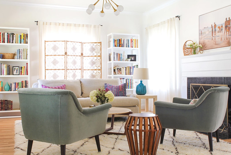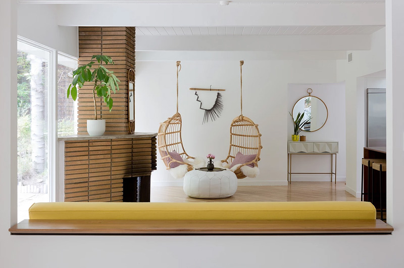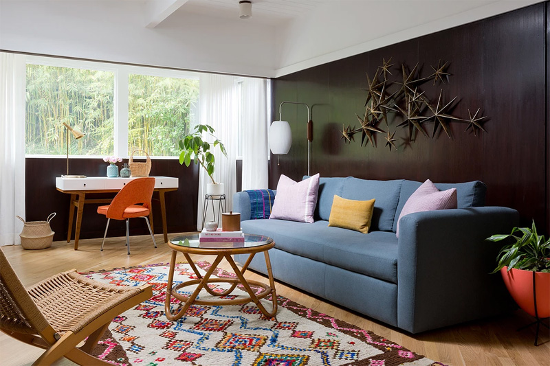 I am short on pets on furniture entries this week so please send pics to kim[at]desiretoinspire[dot]net or hashtag them on Instagram with #dtipetsonfurniture. In the meantime I bring you some fun, fresh, timeless, slightly bohemian, slightly mid-century, beautifully decorated space by Los Angeles interior designer Taylor Jacobson. I even found a pet on furniture photo in Taylor’s portfolio to include in this post. 🙂