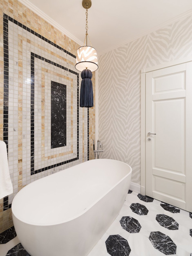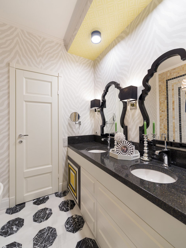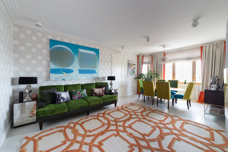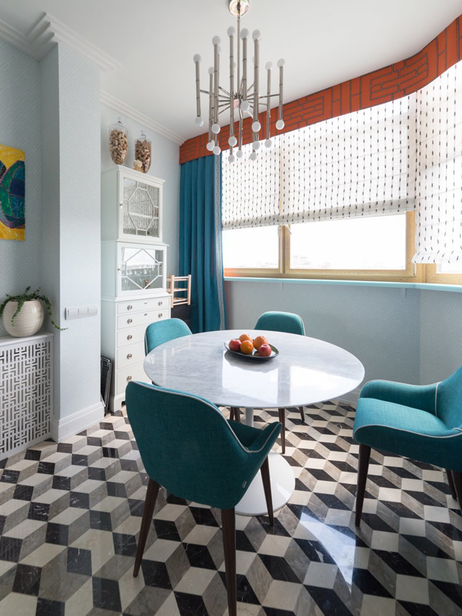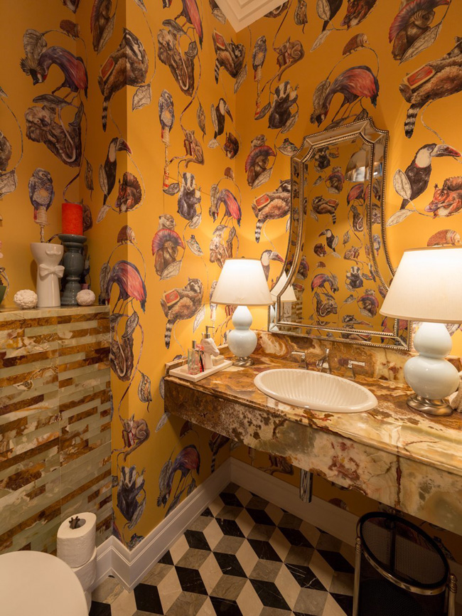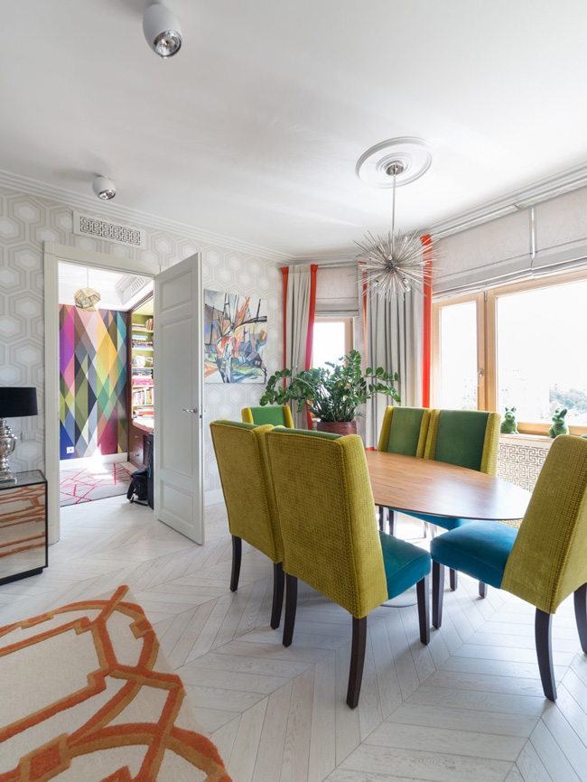 I had to share this bold apartment in Moscow I found yesterday on The Village because I love when designers show creativity and take risks. Hats off to Marina Zhukova for having the guts to go all Jonathan Adler-esque in her own space. All of the wild colours used throughout along with all the fabulous wallpapers and tile work make for some serious graphic, dramatic statements.