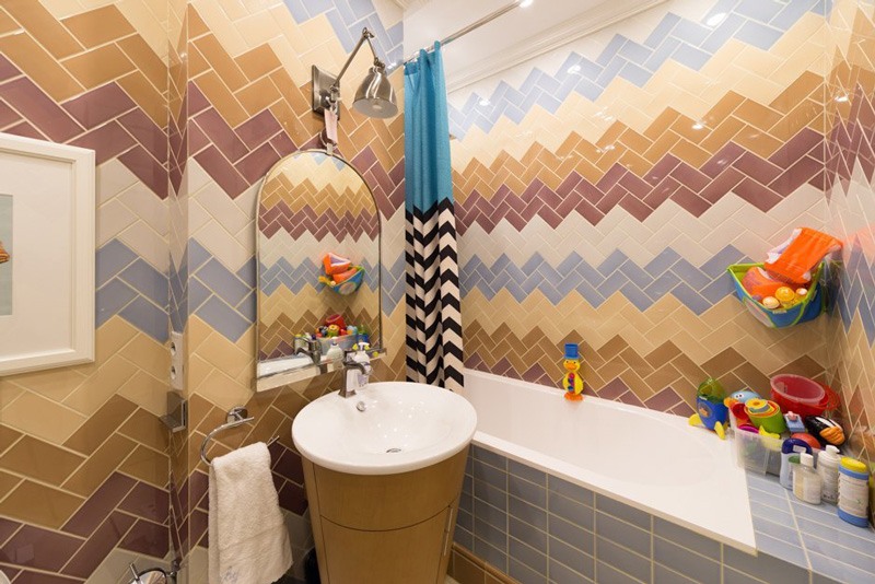 I just love the decorative tiles used in creating such design patterns on the floors and walls of each room. It is truly unique in style, giving the touch a personality of its own. The tiling job that was done to the bathroom is amazing. I like the wall tiles on the bathtub side, as well as the zigzag pattern near the bathroom sink which gives an ethnic feel.