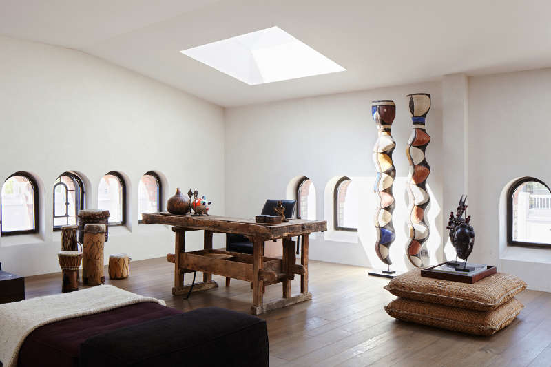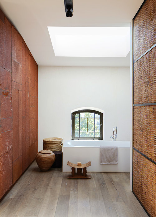 A minimalist oasis of calm sits atop a heritage building in Berlin, the home of a globe trotting entrepreneur with a killer African art collection. German interior architecture firm Dreimeta (who also designed Tuesday’s La Granja in Ibiza) has created a home as retreat, an escape from high powered, fast paced lives, a place to be surrounded by authentic materials and treasures from travels, a beautiful space to collect and recollect.