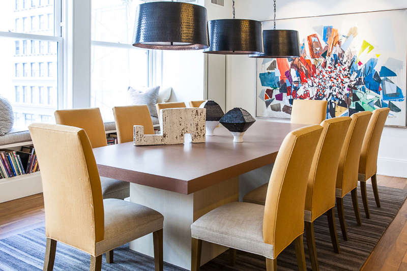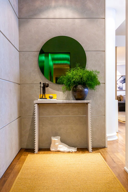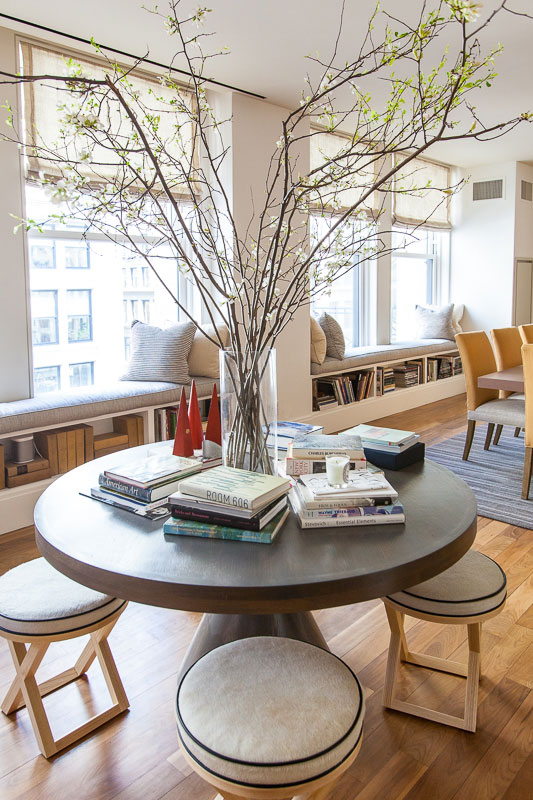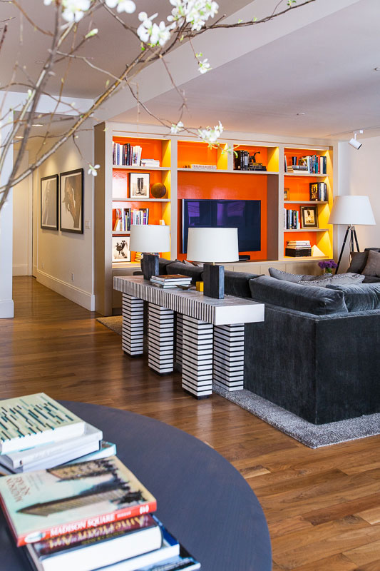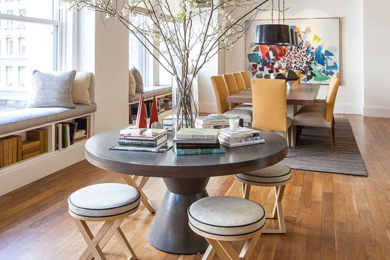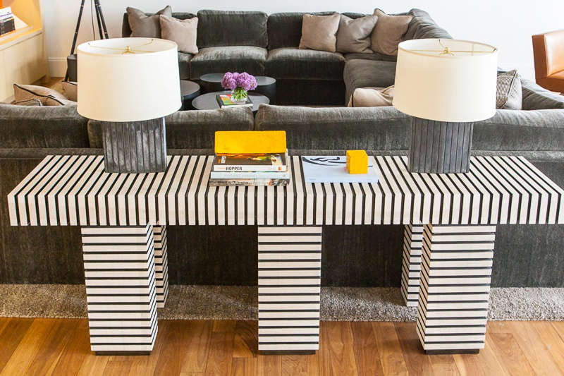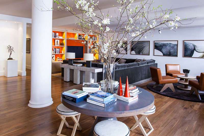 Whether it’s a sense of drama or a feeling of comfort this NY apartment by Samuel Amoia will meet your design needs. From striking one off pieces to oversized and over-comfy sofas, from circle motifs to sawtooth stripes the open plan living is stylish and sophisticated.
