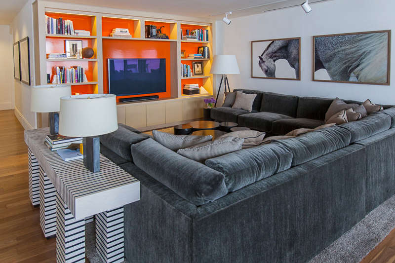 Love it, the orange wall behind the TV is a great pop of colour. The sofa looks super comfy.