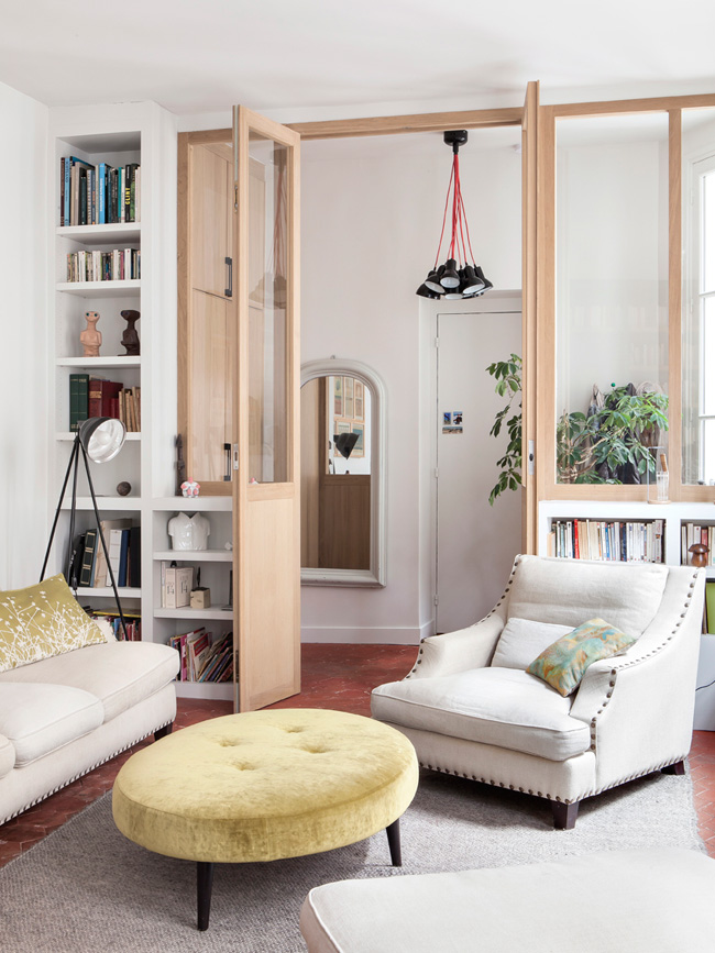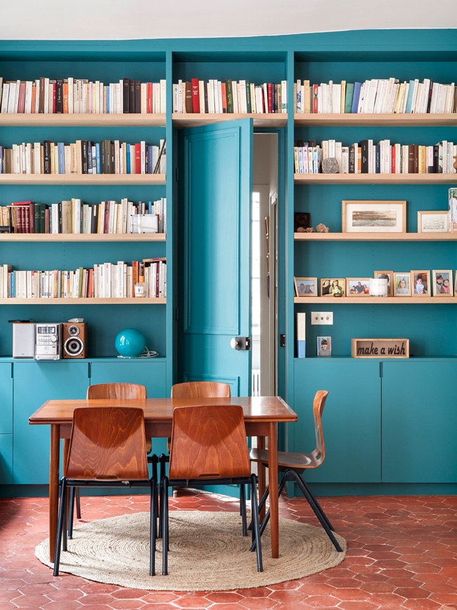 Easing into the weekend with a bright, somewhat colourful, 77 m² apartment in Paris that was recently renovated. Architect/designer Camille Hermand continues to amaze me with her use of colour, unique storage solutions and just all-around charming vibe of the places she has transformed. That teal is SO pretty.